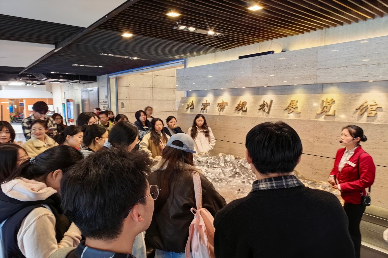 在专业讲解员引导下,师生们依次参观各主题展区。展区通过历史照片、城市规划沙盘、数字多媒体、图文展板等多元形式,全面展示北京城市规划的历史沿革、建设成果与未来愿景。在巨型城市沙盘模型前,大家驻足凝视,清晰辨识 “一核一主一副、两轴多点一区” 的城市空间结构,感悟千年古都的历史底蕴,直观感受首都规划的科学性与前瞻性,纷纷赞叹首都发展的战略布局与宏伟气魄。