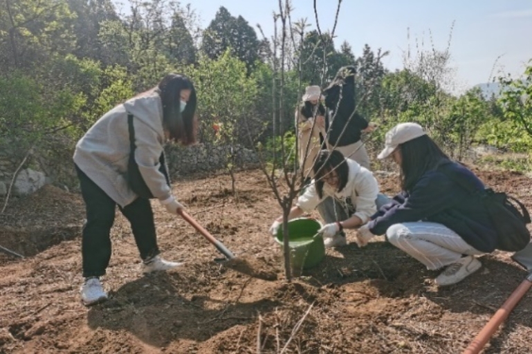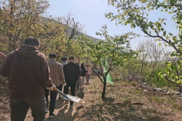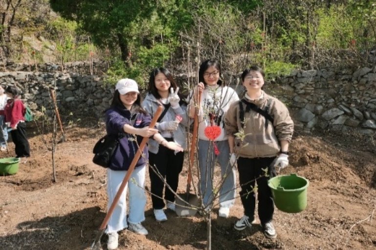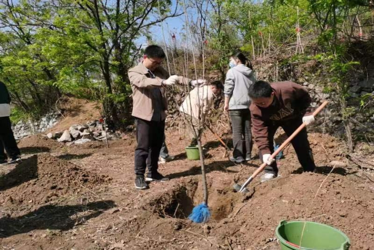 为深入开展学习贯彻习近平新时代中国特色社会主义思想主题教育,践行习近平生态文明思想,增强全体党员党性观念和党员意识,4月24日,yl6809永利食品科学与工程硕士生党员在门头沟区谷山村开展了以“植树增春意,观耕汲力量”为主题的义务植树党日活动。