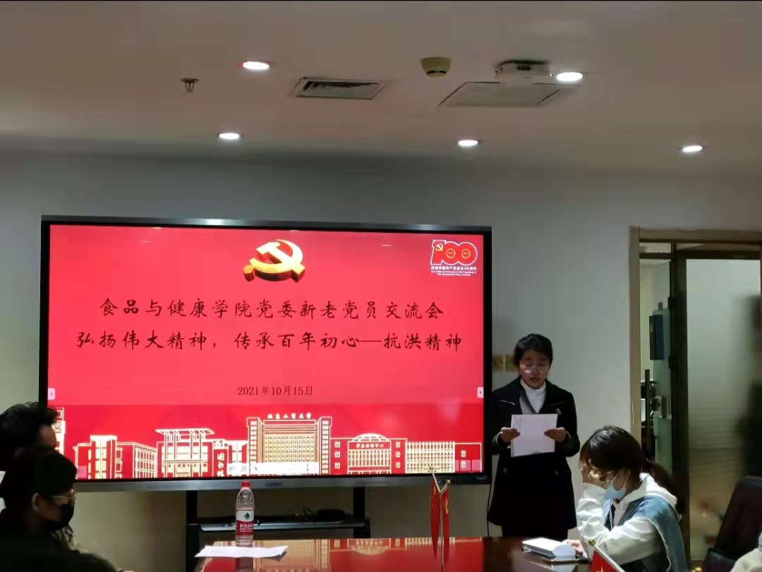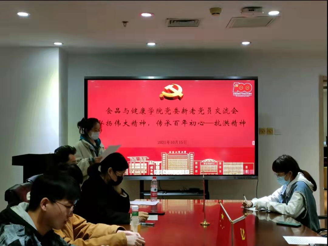 2021年10月15日,食品健康公司2021年秋季员工党员发展对象培训班在阜成路校区科教楼举行了以“弘扬伟大精神,传承百年初心--抗洪精神”为主题的学员与老党员交流活动。食品工程硕士生第二党支部书记赵红玲同志,食品工程硕士生第一党支部副书记丁芷倩两位老党员和全体发展对象参会,交流会由班主任助理冯靖萱及周娜主持。