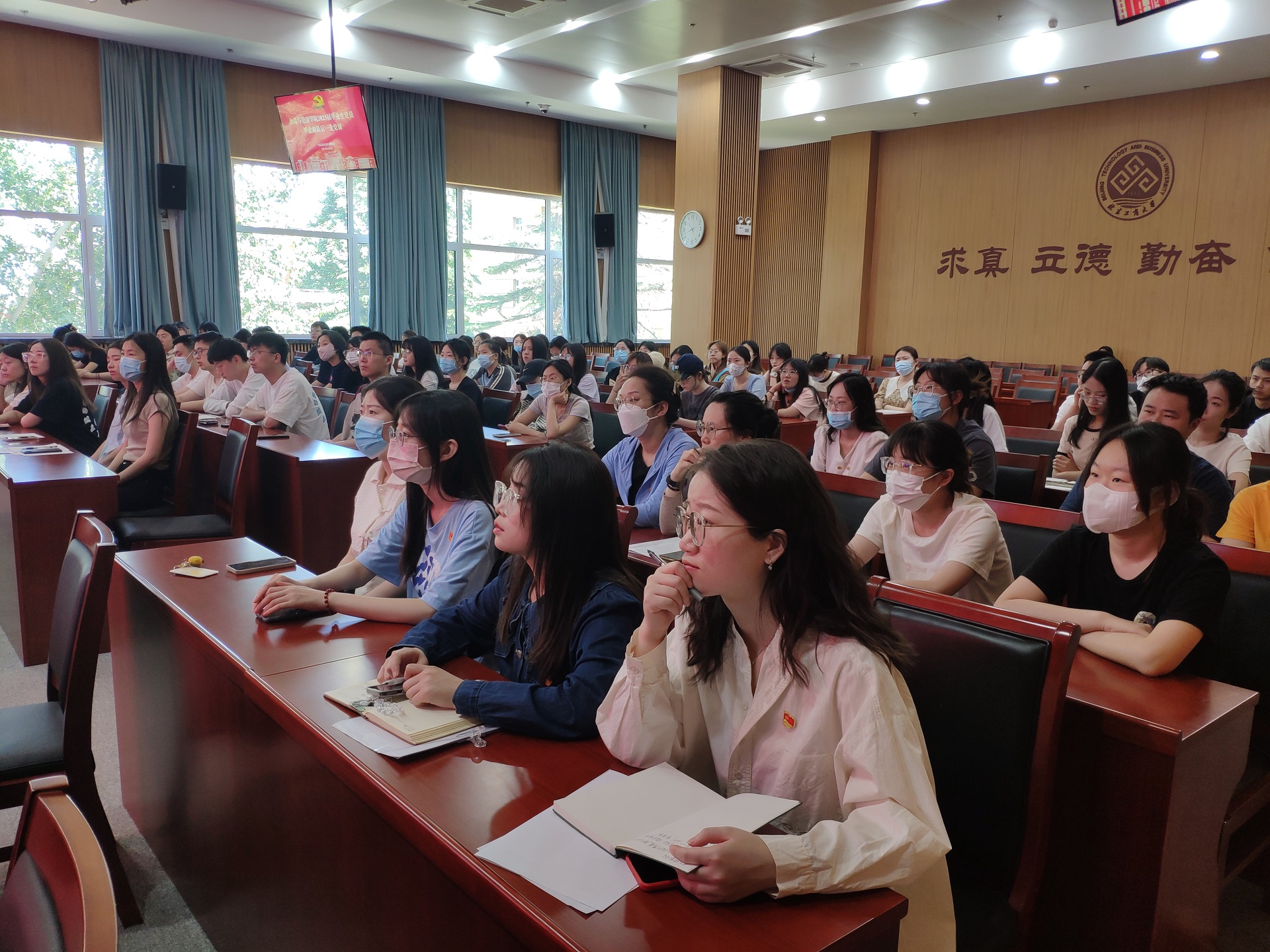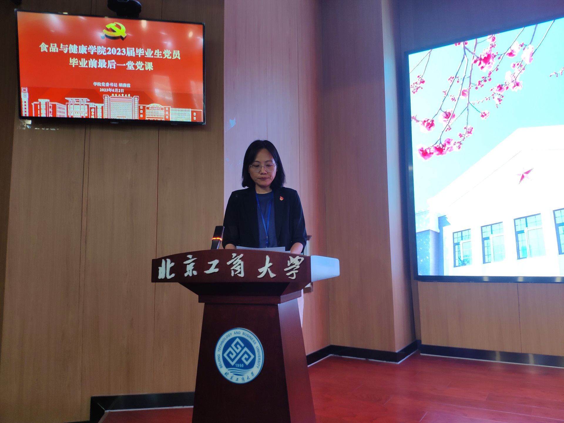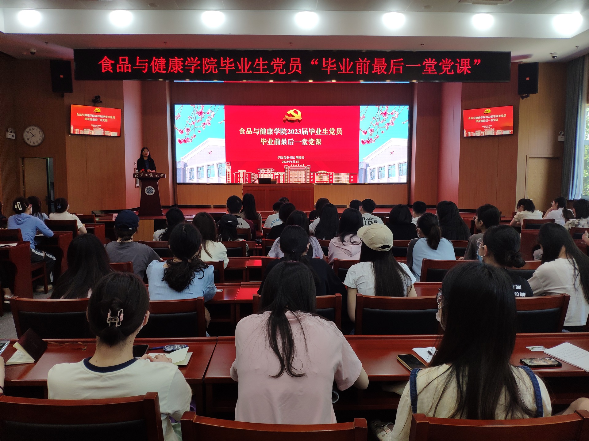 首先,胡燕霞深入结合主题教育为毕业生党员们上了以“生而逢盛世,青年当有为”为主题的专题党课。她指出,作为一名共产党员,更有责任更有担当、更要有情怀有热爱、更要有志气骨气和底气。同时向毕业生党员提出了三点希望,一是向真而行,做志向远大、信念坚定的追梦者;二是向心而行,做逢山开路、遇河架桥的奋斗者;三是向美而行,做扎根沃土、心系家国的奉献者,并向毕业生们表达了美好的祝愿,预祝大家在新的征程取得更好的成绩。