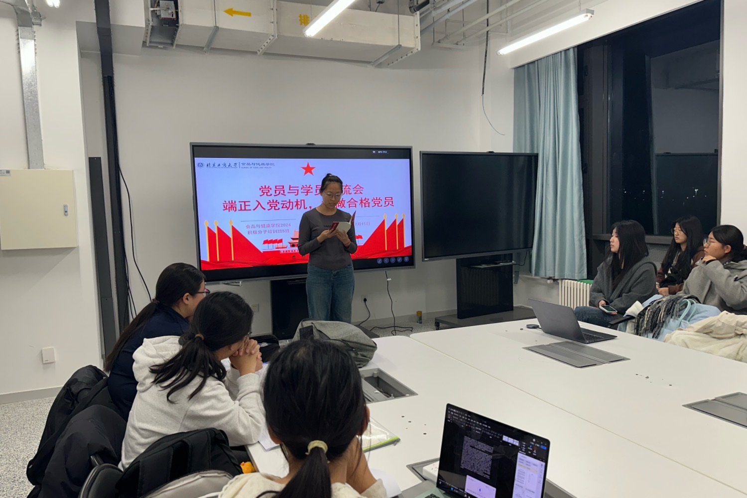 八位党员从端正入党动机的重要性谈起,强调作为入党积极分子,应深刻理解入党的意义,结合自身的员工干部经历,分享了如何在学习和生活中发挥先锋模范作用,用行动践行党员的责任与使命。他们鼓励学员们通过理论学习和实践锻炼,不断提升政治觉悟和综合能力,以实际行动体现入党积极分子的先进性和模范带头作用。