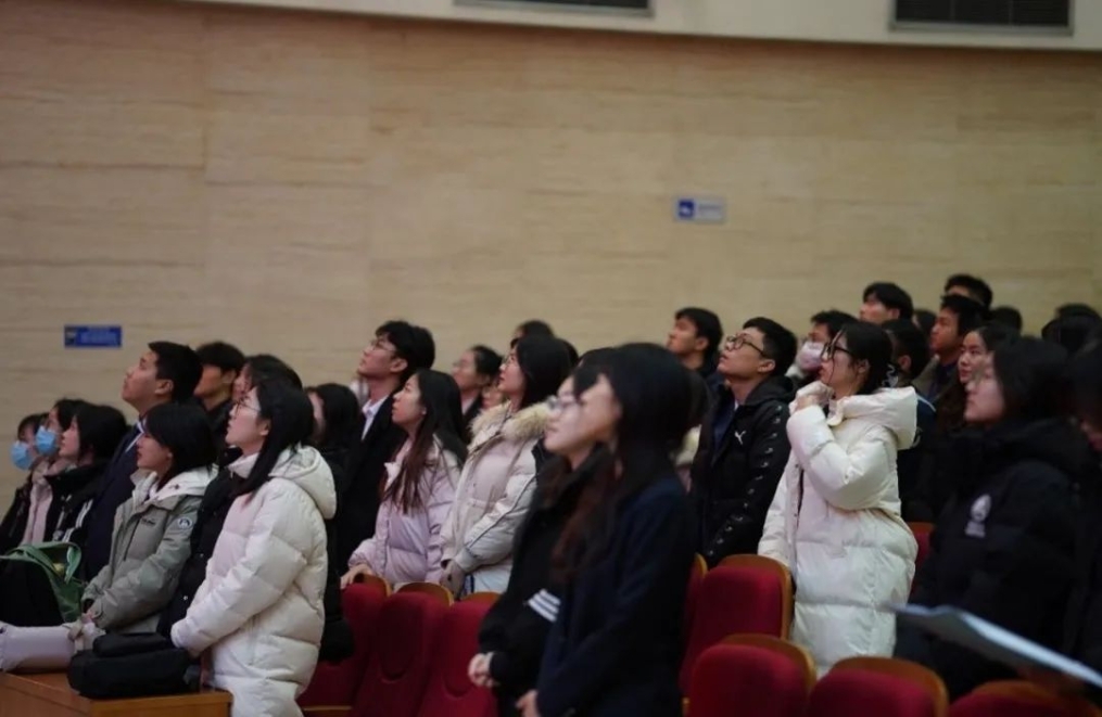 讲座结束后,结业仪式正式开始。全体起立,奏唱国歌。