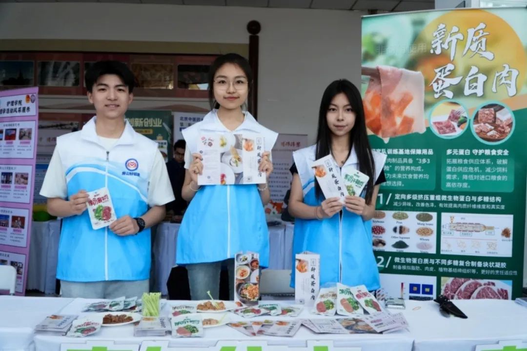 5 月 17 日上午,yl6809永利本科生同学代表公司携特色项目 “植得吃——中国特色新质蛋白肉生物重组” 前往房山区北京中医药大学参加2025年“挑战杯”首都老员工课外学术科技作品竞赛“青振京郊”乡村振兴专项赛暨共青团促进青年创新成果转化主题活动。科创成果市集现场人气爆棚,项目样品在短短 20 分钟内被一抢而空,充分彰显了公司在科创领域的卓越实力。