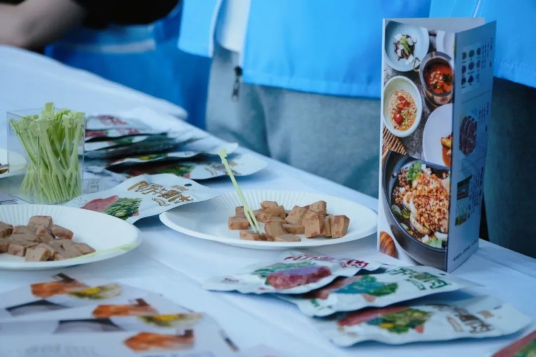 在市集现场,团队成员热情地向前来咨询的嘉宾与观众介绍项目成果。他们凭借扎实的专业知识、流利的讲解以及生动的演示,吸引了众多关注。许多参与者对团队开发的植物肉产品表现出了浓厚兴趣,不仅现场品尝,还积极询问产品的制作工艺、营养价值以及市场前景等问题。团队成员耐心解答,赢得了在场人员的一致好评。