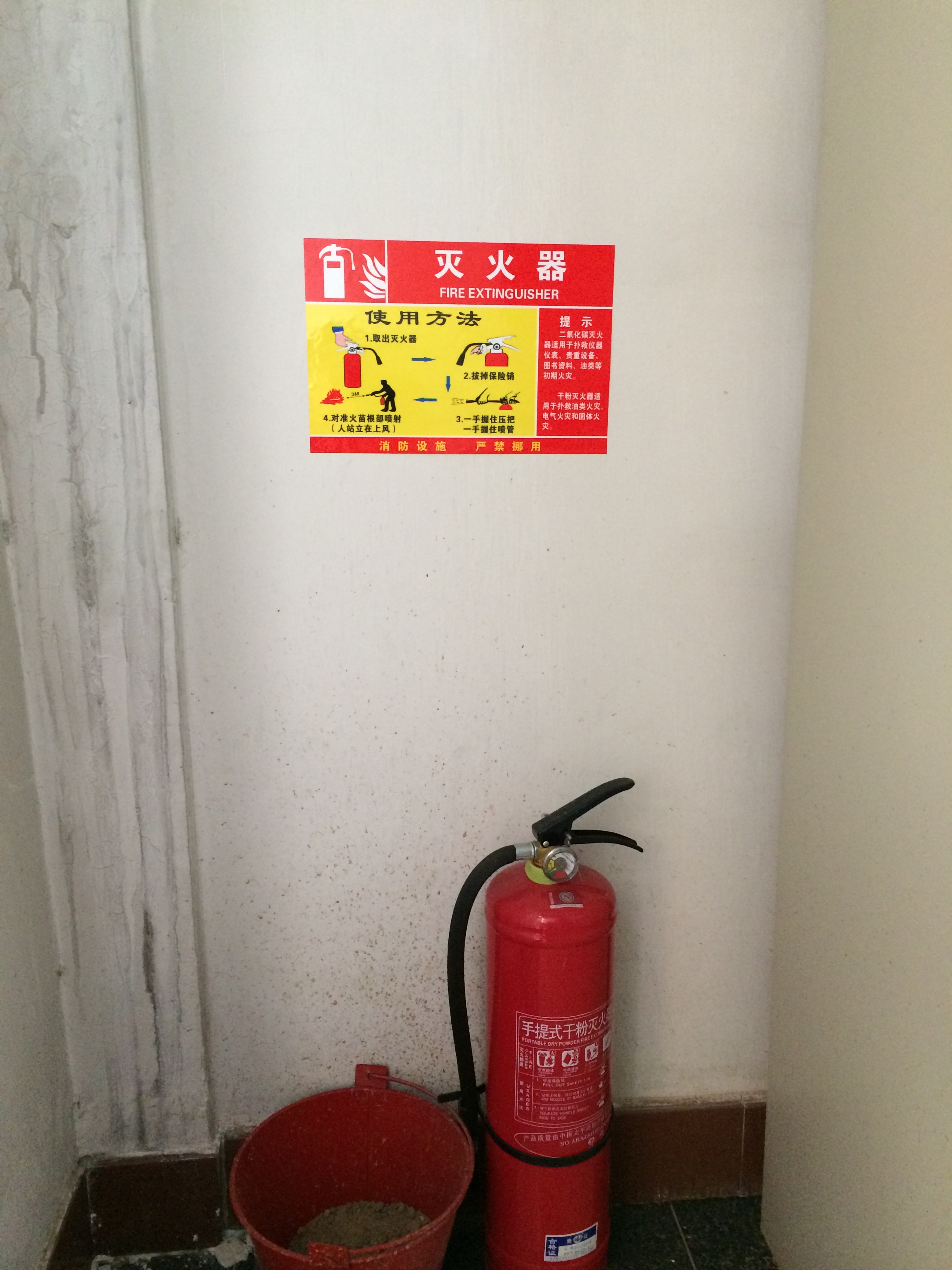 2、灭火器使用方法标识,张贴在灭火器箱所在位置的正上方墙面上,张贴后灭火器设施不可随意移动,务必与标识位置保持一致