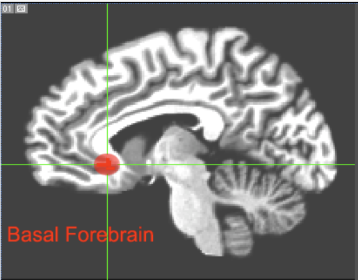(基底前脑区在图中的红圈)