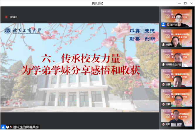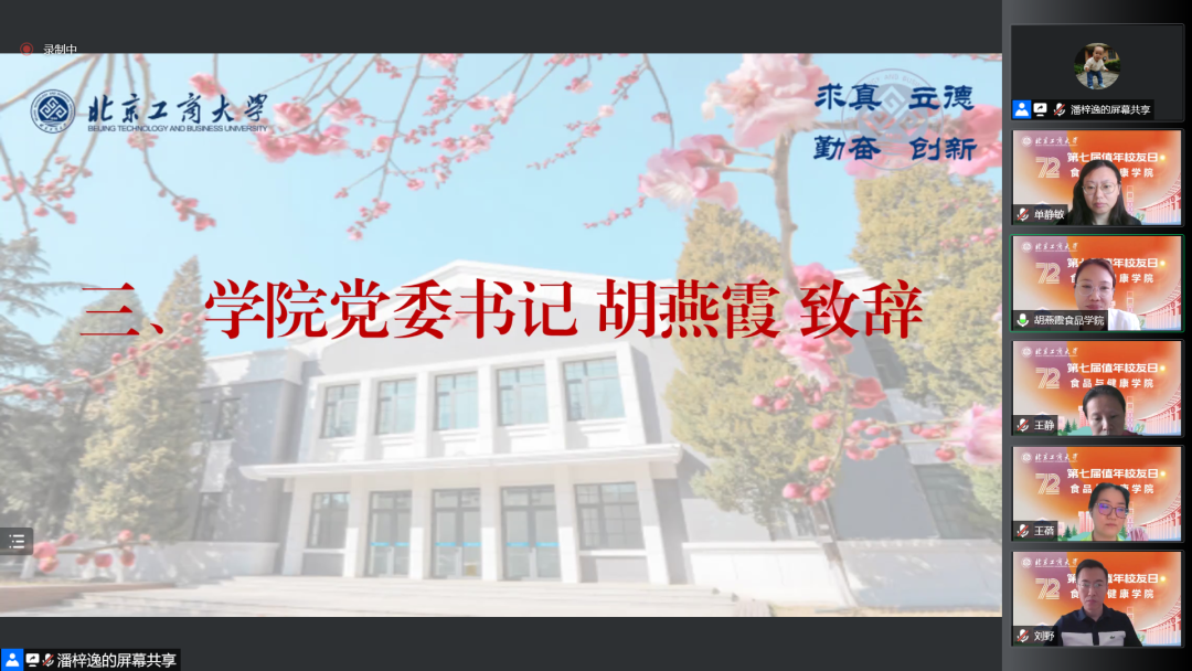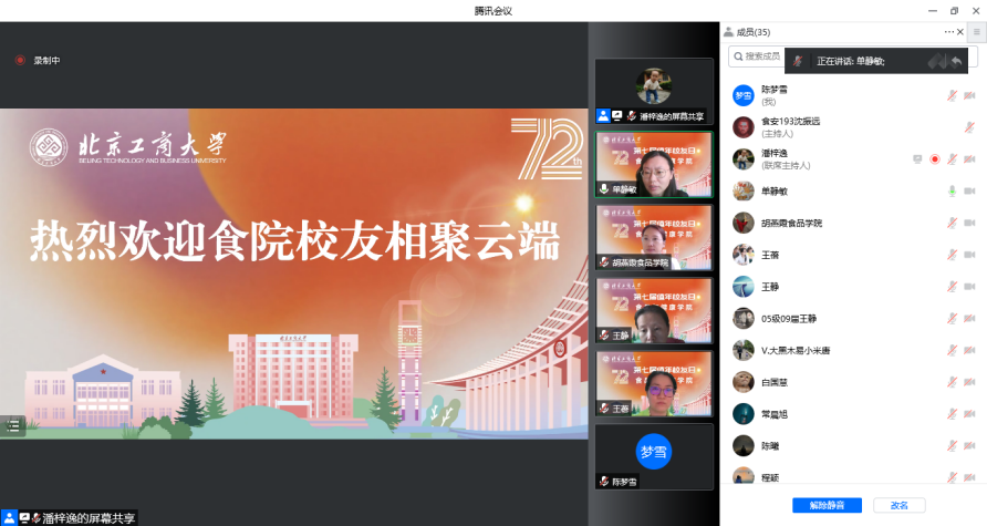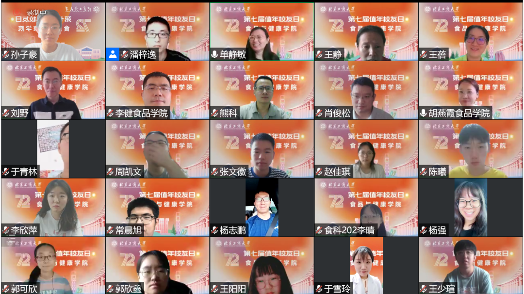“云端”合影留念环节后,“云返校”活动在悠扬的校歌声中落下帷幕,浓浓的同窗情溢满“云端”网络,直达每个“食院人”的心底。