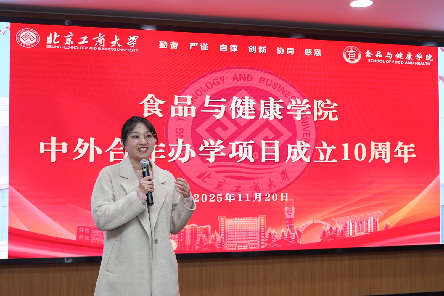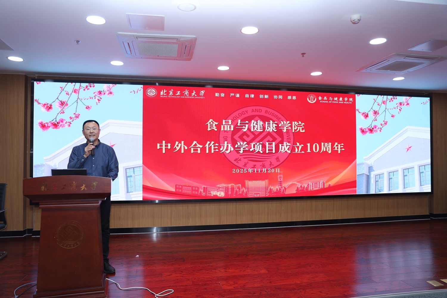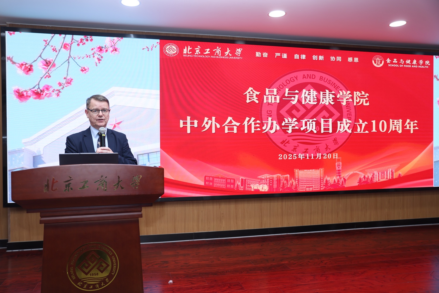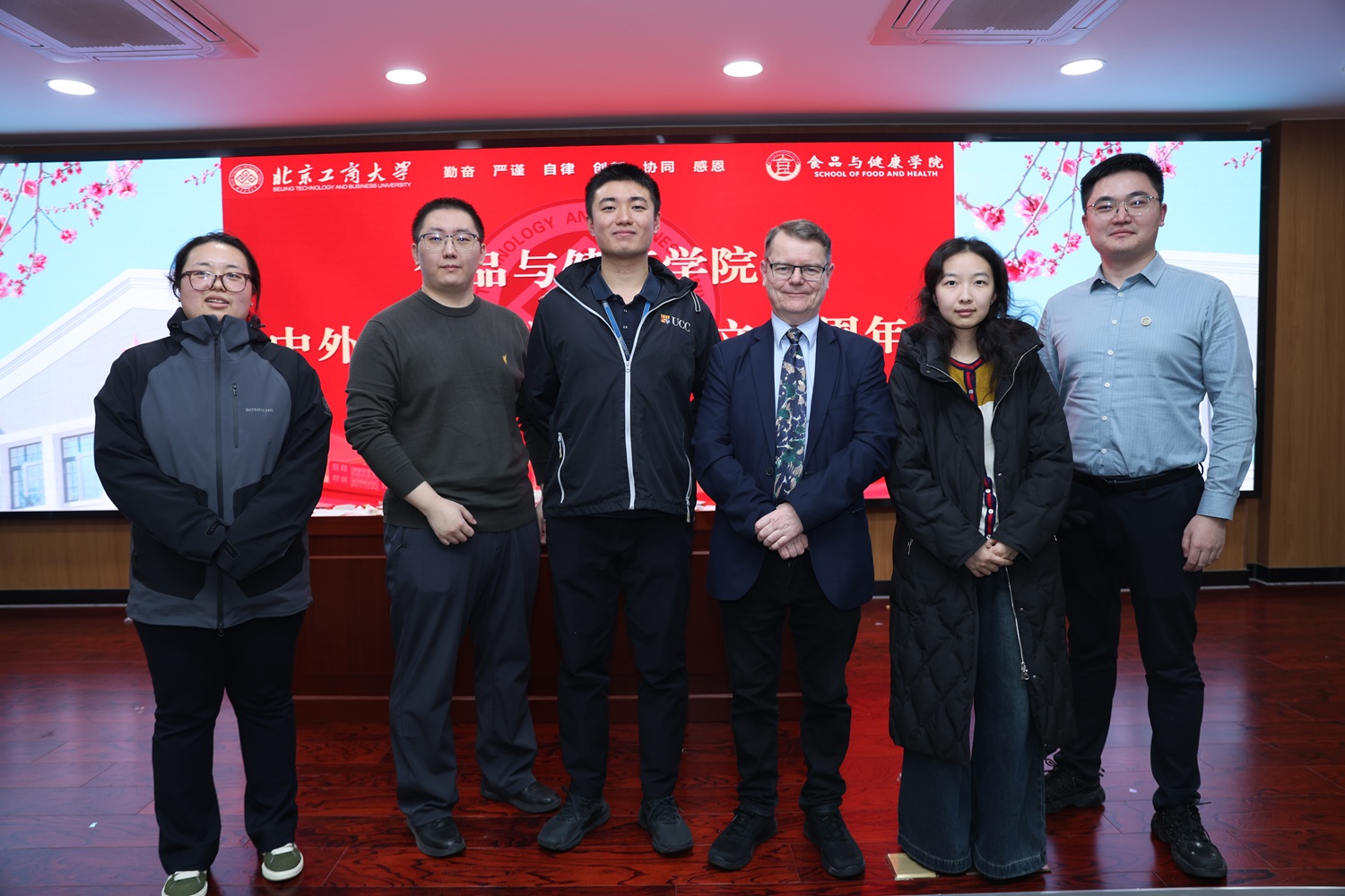 2025年11月20日,yl6809永利和爱尔兰国立科克大学合作办学项目十周年庆祝活动在阜成路校区举行。科克大学食品科学国际学位项目主任Maurice O'Sullivan、副主任马晓彬,yl6809永利集团国际交流与合作处副处长曹嬿、yl6809永利经理王彦波、副经理王蓓,2015至2025级中外班师生和毕业生代表共同出席。活动由王蓓主持。