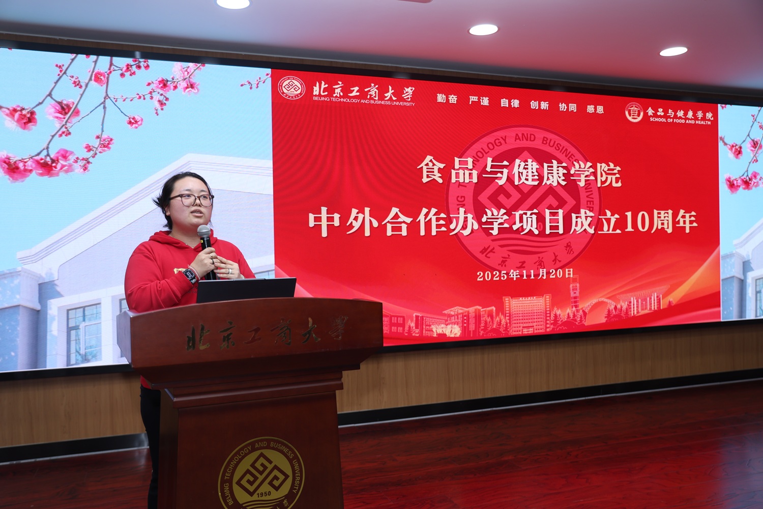 活动在25级中外班员工宋珂慕带来的独唱《Rosy》中拉开序幕,悠扬的歌声传递着青春活力,也揭开了项目十年发展的温馨序幕。随后,十周年专题宣传片缓缓播放,短片浓缩了项目从创立到成长的奋斗历程,定格了课堂上的知识碰撞、校园里的朝夕相伴以及毕业生在职场上的崭露头角等珍贵瞬间,全方位展现了项目的办学成果与学子风采,引得现场阵阵掌声。