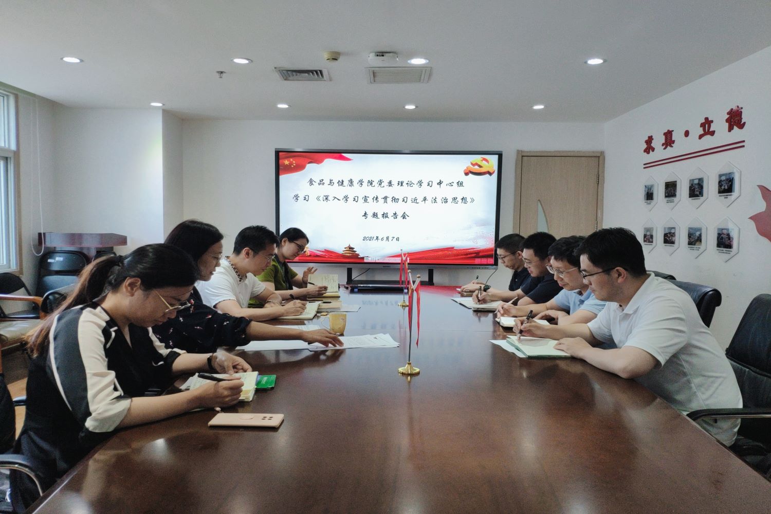 专题会后,胡书记强调:中心组成员要带头深入学习贯彻习近平法治思想,带头尊崇法治、敬畏法律,不断提高运用法治思维和法治方式解决实际问题能力,要坚持不懈用习近平法治思想武装头脑、指导实践、推动工作,教育引导全院教师切实做到学党史、悟思想、办实事、开新局,为建设更高水平的法治中国作出更大贡献,以优异成绩庆祝建党100周年!