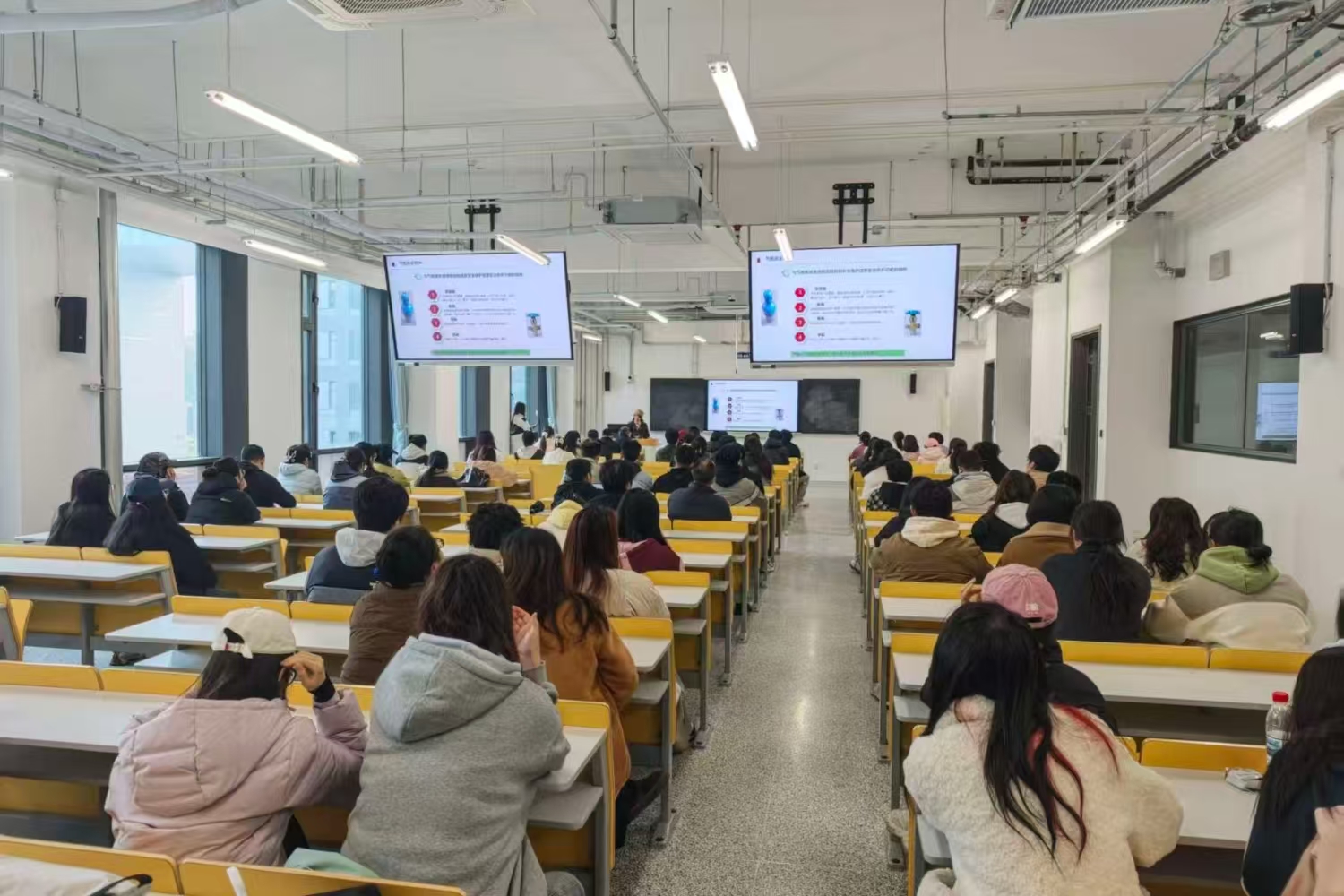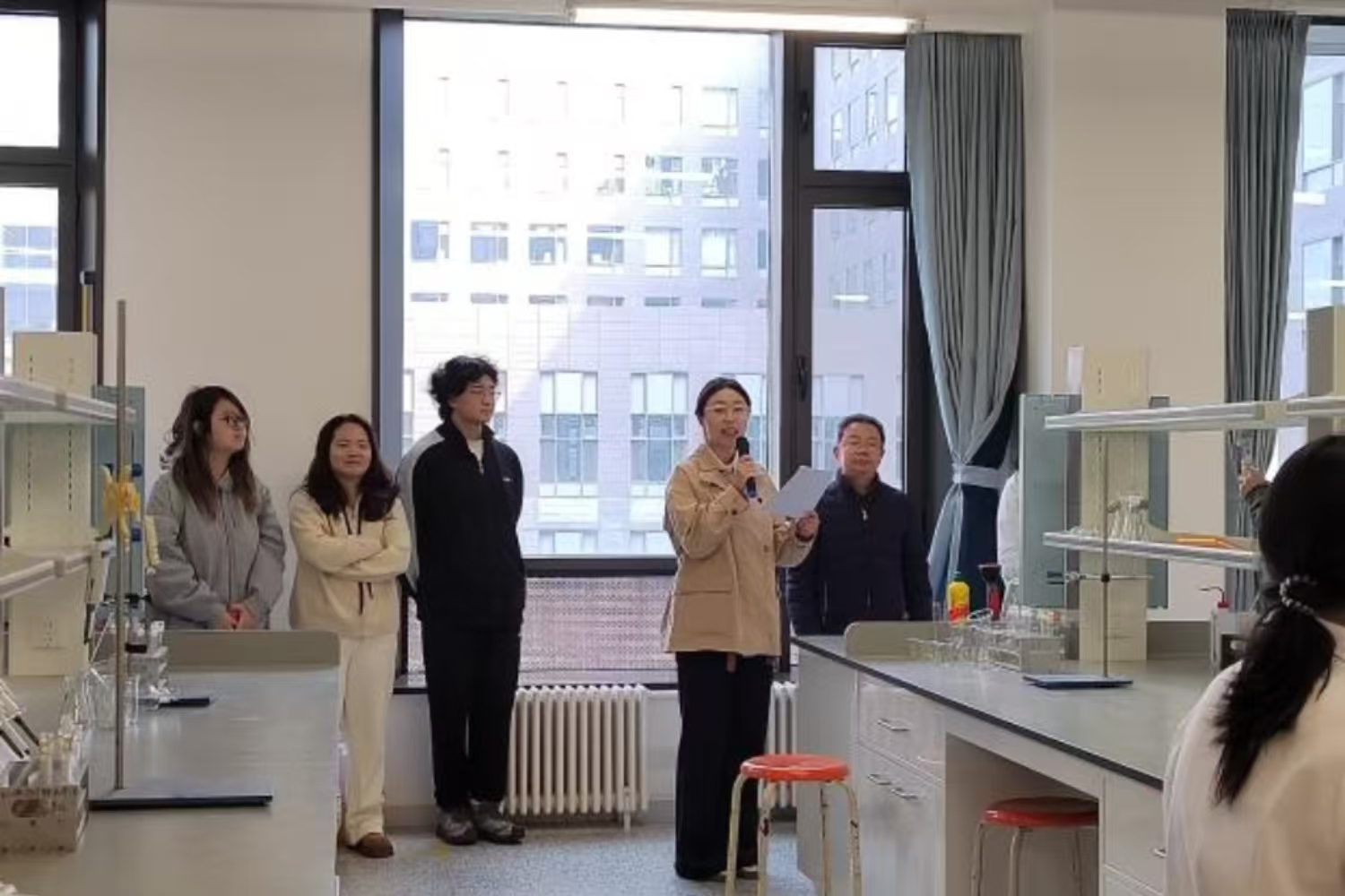 演练活动第一阶段是气瓶安全知识培训。培训由实验室管理处处长康智勇主持,特邀安全专家进行授课。专家从气瓶的安全管理与使用规范、日常维护要点以及典型事故案例等多个方面,为在场师生进行了一场深入浅出、内容翔实的专题讲座,有效夯实了大家的理论基础与风险防范意识。在紧张的实战演练环节,全体参演人员移步至预设演练场地B221实验室。演练模拟了该实验室发生“氮气泄漏”,导致一名“实验人员”缺氧昏迷的紧急场景。随着险情被发现,应急程序立即启动。实验室安全负责人迅速下达指令,现场师生反应迅速、分工明确,有人立即佩戴自给正压式呼吸器关闭气源、开窗通风;有人迅速拨打急救电话并将“伤员”转移至空气清新处;疏散负责老师则立即组织现场其他人员,用毛巾捂住口鼻,沿安全通道快速、有序撤离至紧急集合点。整个过程中,信息报送、现场警戒、人员清点等环节衔接紧密,完整再现了从事故发现、先期处置到全面响应、后期处置的全流程,全面检验了《实验室气瓶气体泄露事故现场处置方案》的科学性和可操作性。