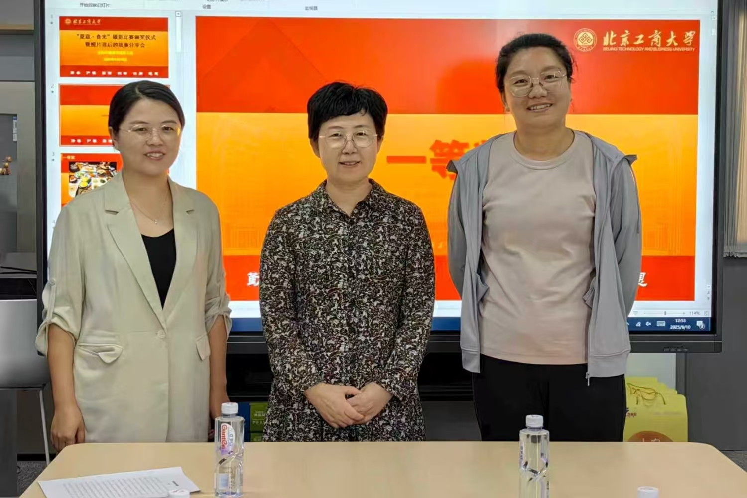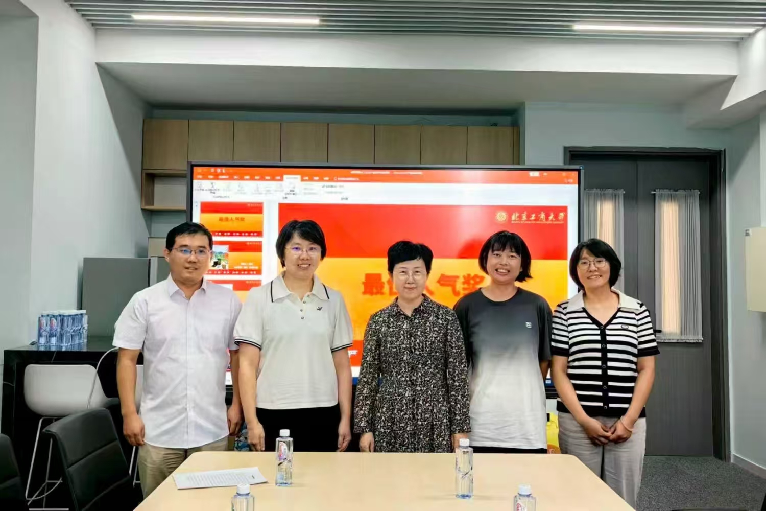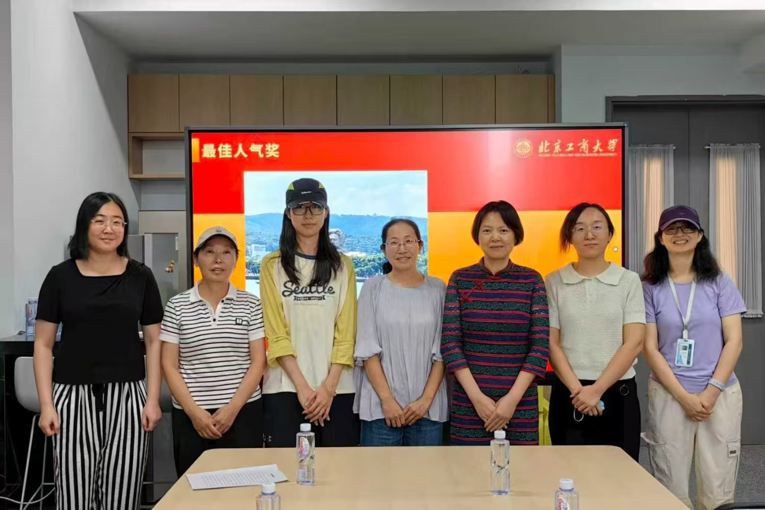 分工会对暑期开展的摄影比赛活动进行了总结,表扬积极参加活动的教工,分为“食色生香”“匠心在岗”“行摄山河”三个主题,按照纪念奖、最佳人气奖、二等奖、一等奖的顺序为获奖者代表颁奖。获奖者们依次上台领奖,合影留念。