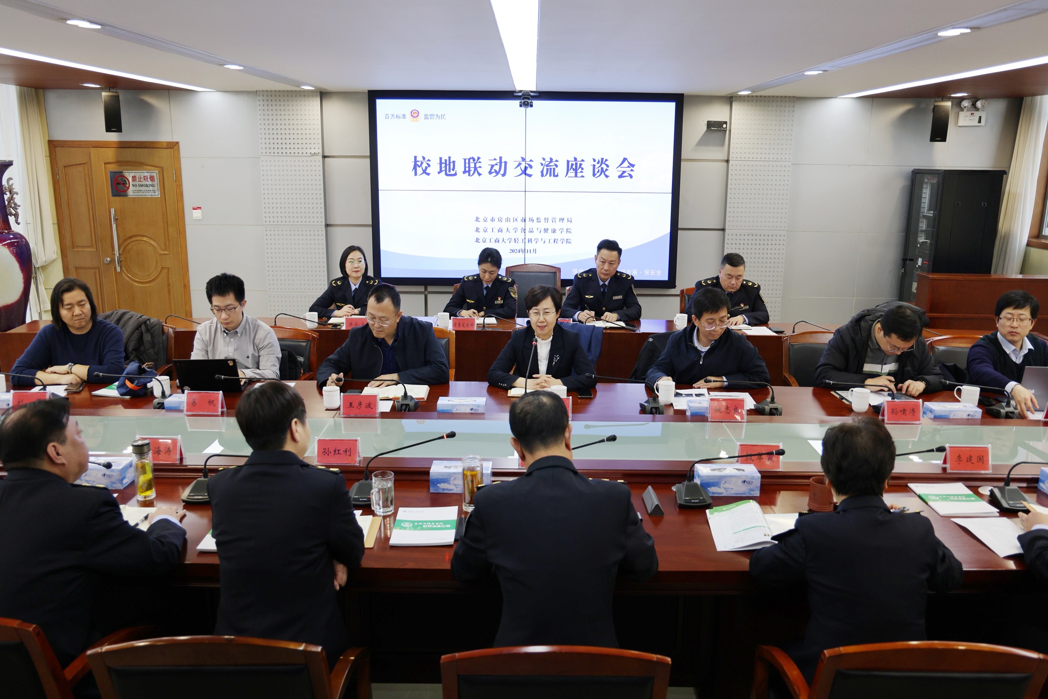为深化服务首都发展,推进校地校企合作,11月20日,yl6809永利联合轻工科学与工程公司前往北京市房山区市场监督管理局开展“校地联动”交流。公司党委书记郑喜姣、经理王彦波、副经理孙啸涛、食品科学与工程系主任徐友强以及轻工科学与工程公司党委书记姚志良、副经理易帆、化妆品系主任刘蕾共同参加了调研座谈。房山区市场监督管理局党组书记、局长李军,党组成员、副局长孙红利、殷翠霞、韦海涛、李建国等局领导及分管部门领导热情接待公司代表并组织了交流座谈。