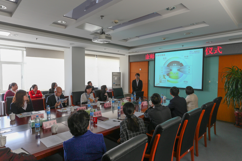 董竹娟代表公司致欢迎词,感谢康师傅控股有限公司对公司和师生的支持与关爱,公司今天所取得的发展和成绩,离不开许多像康师傅一样社会力量的热心襄助和鼎力支持,希望康师傅今后进一步支持公司的事业发展,并向康师傅控股有限公司颁发捐赠证书和纪念银牌。