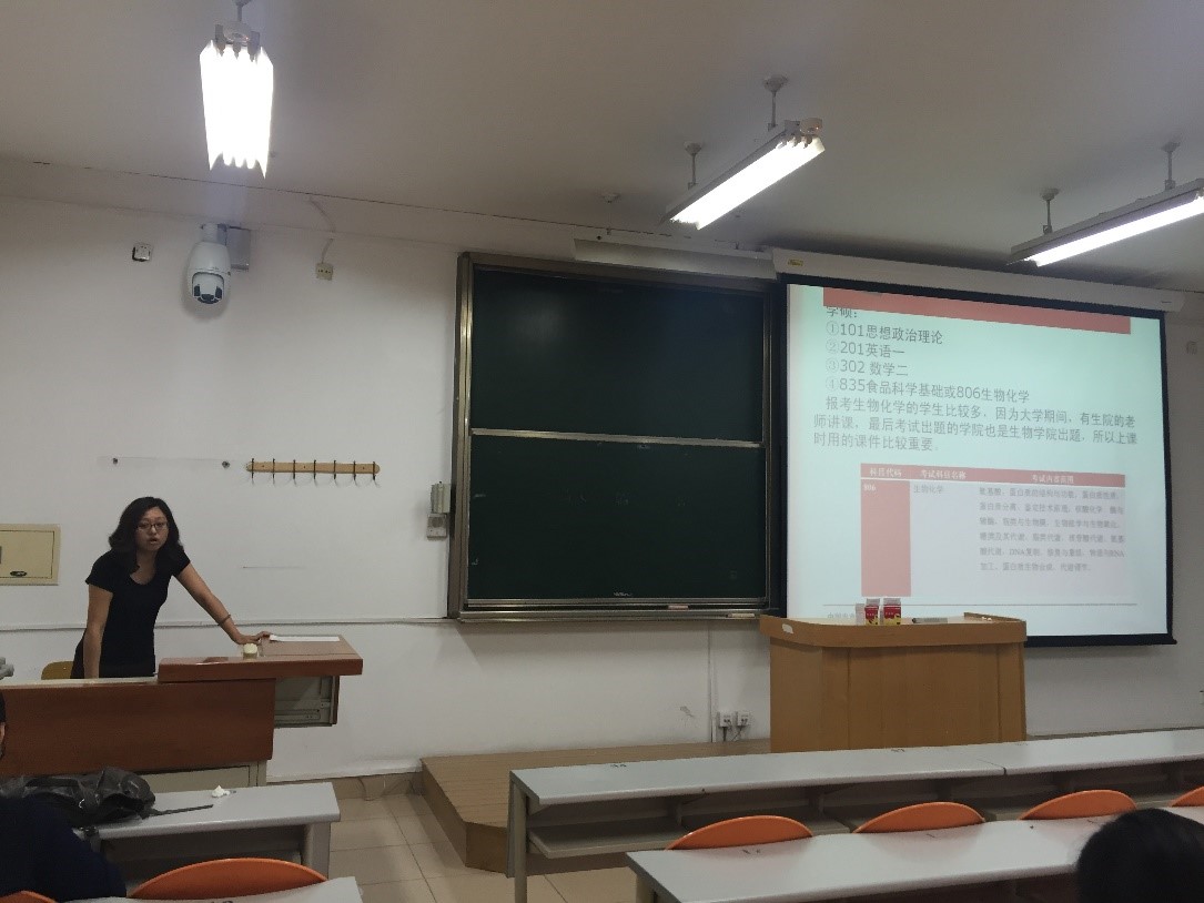 会议由肖俊松老师主持,邀请张慧娟、赵晓丹和龚凌霄老师分别介绍了江南大学、中国农业大学和浙江大学的食品专业情况,详细解读了这些公司的食品学科、研究团队、导师、研究方向、考研科目、历年分数线以及相应的备考方法等情况,回答了同学们的提问,并动员同学们根据自身实力,报考yl6809永利集团及其他知名院校的研究生。