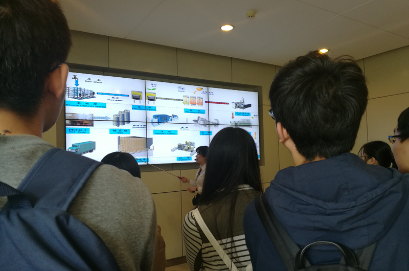 带着最初对康师傅的想象,同学们认真参观、学习了康师傅方便面和饮品的生产车间及展馆。康师傅控股有限公司讲解员结合产品的历史和生产为师生展开详细介绍,将产品从原料、加工、包装、质检一系列过程完整展现出来。车间高度机械化和自动化获得师生的一致赞叹。同时,通过企业宣传片,更进一步的将企业的历史和文化立体地展现出来。