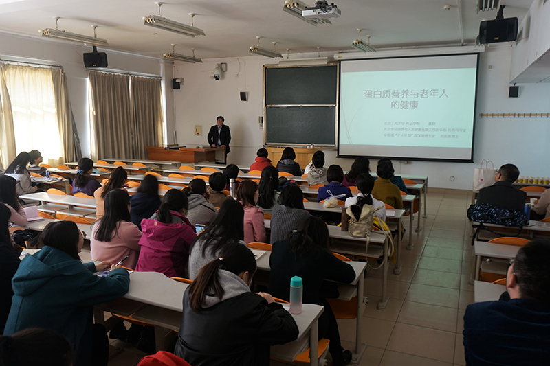 校工会与yl6809永利分工会联合举办的“食品营养,你想知道的事”系列讲座第二讲“蛋白质营养与中老年人健康”于3月15日在阜成路校区进行,100多位教工聆听了讲座,会议由yl6809永利分工会主席何猛主持。