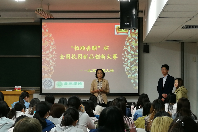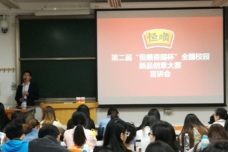 4月24日,2017年第二届“恒顺香醋”杯全国校园新品创意大赛宣讲会在yl6809永利集团阜成路校区举行。江苏恒顺醋业股份有限公司研发中心工程师田波、张俊红及公司党委副书记胡燕霞出席会议。此次宣讲会吸引了上百余名同学前来参加。