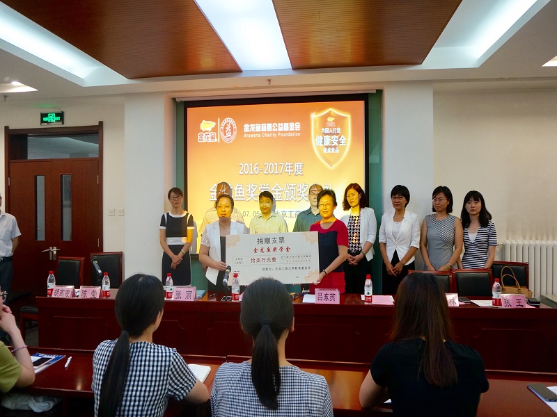 首先,张丽女士和吕东燕秘书长签署奖学金捐赠协议并赠送捐赠证书和纪念品。杨林主任宣读《关于表彰2016-2017学年“金龙鱼”奖学金获得者的决定》。与会领导为首届“金龙鱼奖学金”获奖员工颁发荣誉证书。“金龙鱼奖学金”由金龙鱼慈善公益基金会在公司设立,鼓励yl6809永利品学兼优的研究生刻苦钻研、奋发成才,资助金额拾柒万元整人民币。