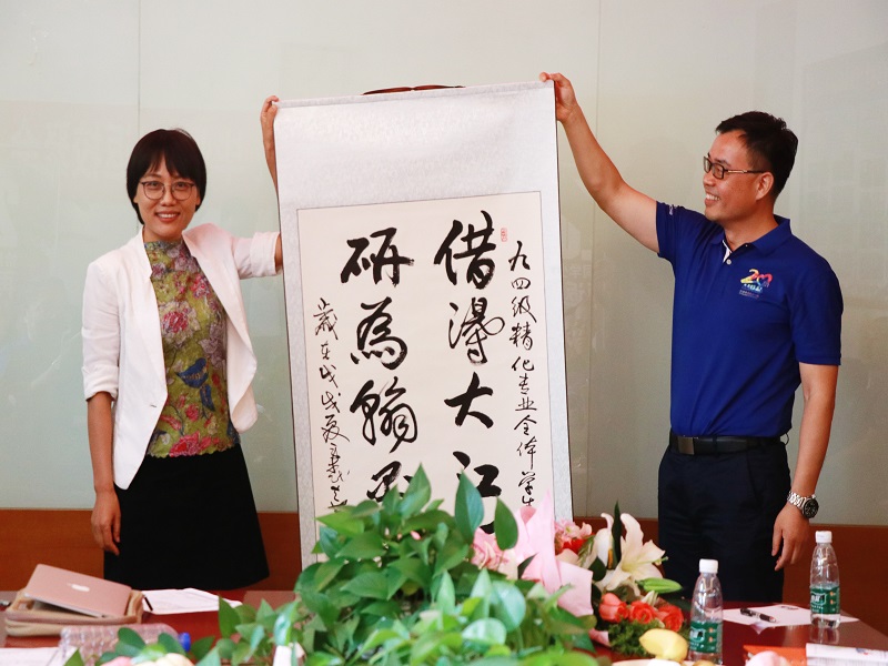 当年的校员工会主席化943的张杰员工代表全体精化94级同学,向yl6809永利赠送了名家书法作品“借得大江千斛水,研为翰墨颂师恩”,以表达对母校以及各位老师的感恩之情。胡燕霞副书记作为院员工工作负责人,代表公司接受了员工的赠品并进行发言,介绍了近几年公司员工工作情况,也希望员工们就健全联络员工、公司与员工互动、搭建公司与员工合作平台等方面出谋划策。