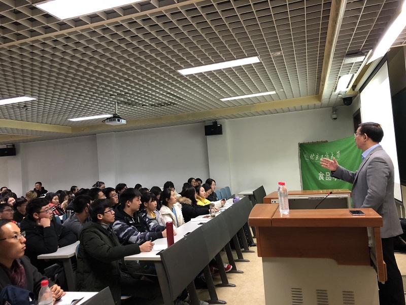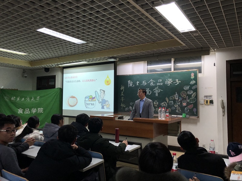 12月12日,在良乡校区董事长孙宝国院士以“中国食品产业的机遇与食品界的历史使命”为主题,为yl6809永利食品科学与工程系大一员工做专业领航讲座。yl6809永利教学副经理李秀婷、公司党委副书记胡燕霞、食品科学与工程系系主任王静、18级班主任张婵、刘慧琳、郦金龙以及专业教师、18级辅导员王丹参加了此次讲座。讲座由食品科学与工程系副主任张敏主持。
