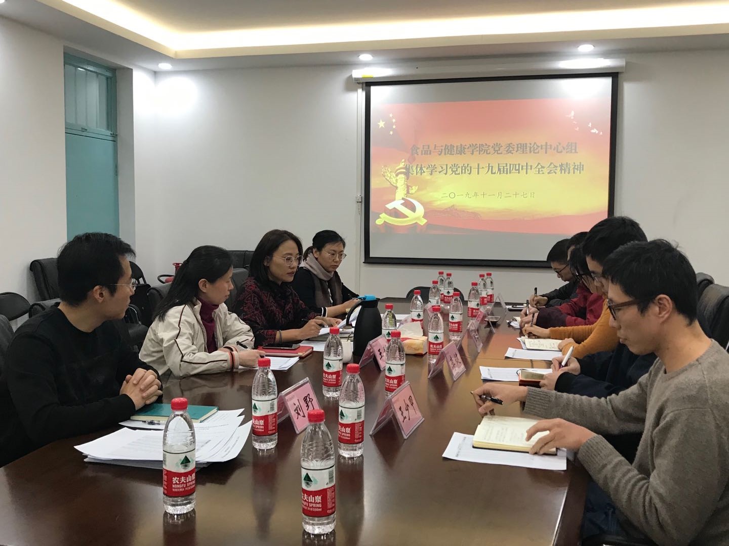 11月27日,公司党委理论学习中心组在阜成路东校区8号楼109会议室,举行党的十九届四中全会精神专题学习会。公司党委书记胡燕霞主持会议,公司党委理论学习中心组成员参加学习会。