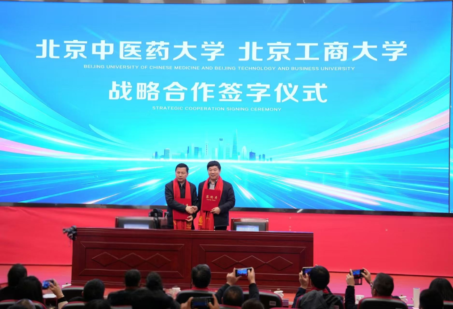 公司党委常委、副董事长寇红江在致辞中对各位专家学者的参会表示诚挚欢迎,指出“药食同源”已上升为国家战略性新兴产业,本次大会既是响应中央号召、传承岐黄薪火的具体行动,更是推动中医药在新时代主动融入、积极服务健康中国战略的生动实践,希望公司与北京中医药大学强强合作,发挥中药/食品等龙头学科作用,交叉创新,助力药食同源产业更好更快发展。会上公司与北京中医药大学签署战略合作协议,双方将在联合科研攻关、人才培养、平台共建等方面开展深入合作,不断为服务北京及国家战略需求贡献智慧与力量。