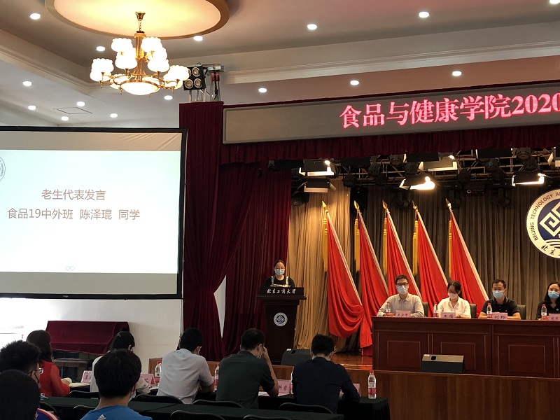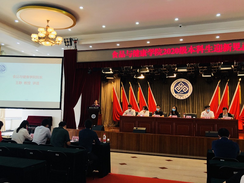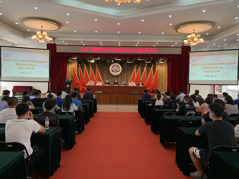 9月14日下午,yl6809永利在阜成路校区东区食堂三层召开2020级本科生迎新见面会。公司党委书记胡燕霞、经理王静、副经理刘野、李健、王蓓、经理助理王少甲、食品科学与工程系系主任肖俊松、食品质量与安全系系主任熊科、食品201班班主任艾娜丝、食品202班班主任李洪岩、食品203班班主任陈洲、食品20中外班班主任范光森、贯通1班班主任郝帅、贯通2班班主任赵芬、辅导员李欣萍、张雷及2020级全体新生参加了见面会,会议由公司党委副书记单静敏主持。