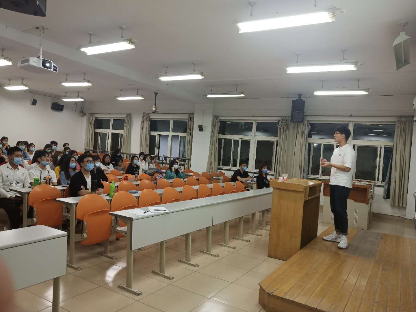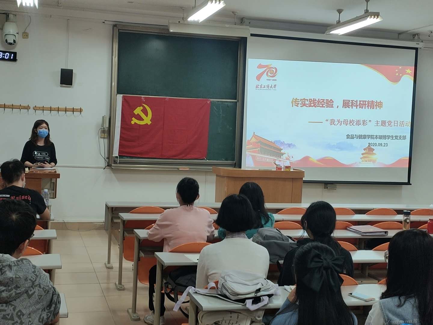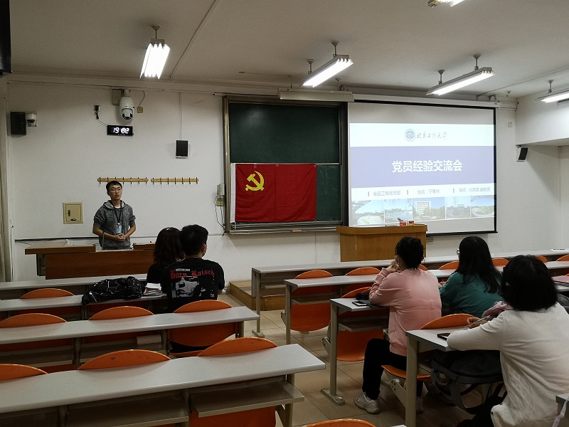 活动第一项为硕博党支部优秀党员实践科研经验分享。三位师哥师姐毫不吝啬地向同学们分享了自己的经验,同学们受益匪浅。食品工程硕士生党支部的于青林师哥向大家讲解了研究生综合测评流程及注意事项。食品科学与工程硕士生党支部的徐明浩师哥诙谐幽默地分享了自己的研究生生活和科研经历,并告诉同学们要主动积极,多与导师交流。已发表五篇一作SCI论文、一篇国家专利的食品科学与工程博士生党支部的萨伊普师姐从自己的青稞面课题入手,讲述了自己在科研中遇到的困难和解决方法,并建议同学们要多阅读文献。三位优秀的师哥师姐谈到母校给予了无微不至的关怀和照顾,让他们倍感温暖,而他们作为北工商的一份子,也正在为母校创建高水平研究型大学贡献自己的一份力量,为母校增光添彩。