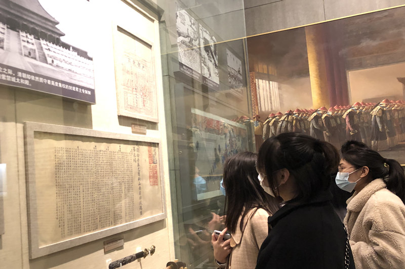 展览共分中国沦为半殖民地半封建社会;探求救亡图存的道路;中国共产党肩负起民族独立人民解放历史重任;建设社会主义新中国;走中国特色社会主义道路5个部分,学员们在辅导员的引导下仔细观看展览,认真听取介绍,仔细感受每一件珍贵文物背后所传达的含义,从历史、科技、航天、体育、文化、军事多个方面感受着我国新时期发生的翻天覆地的变化。