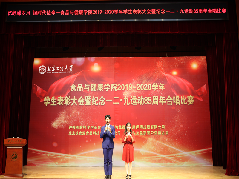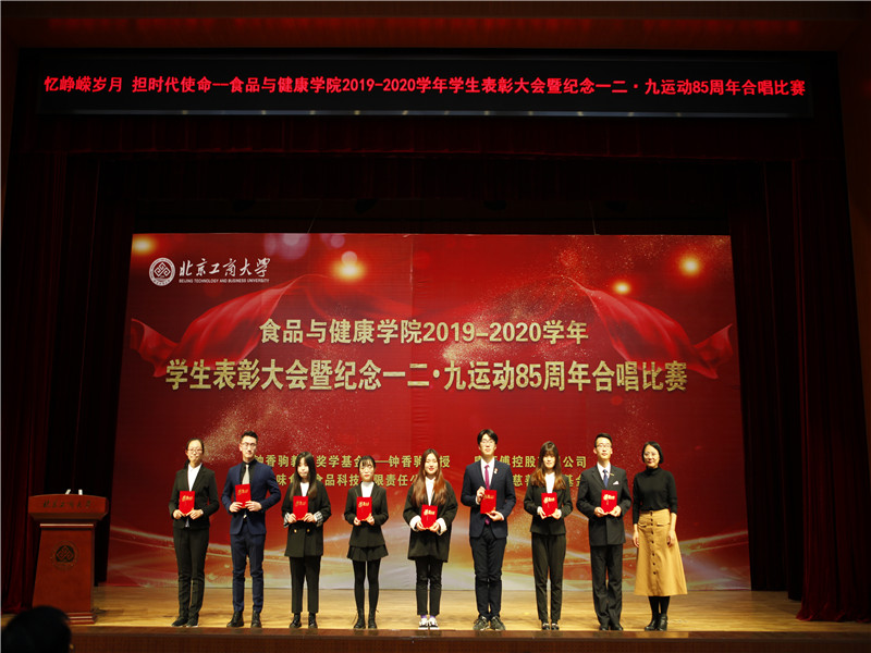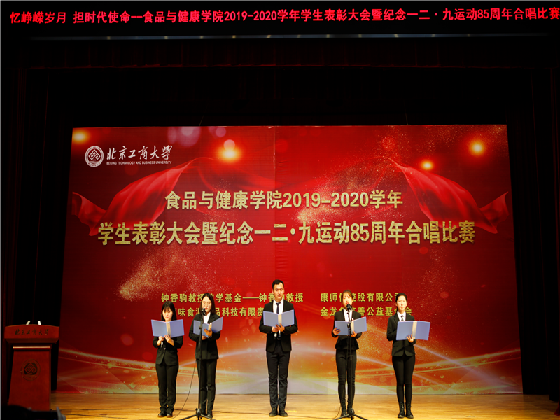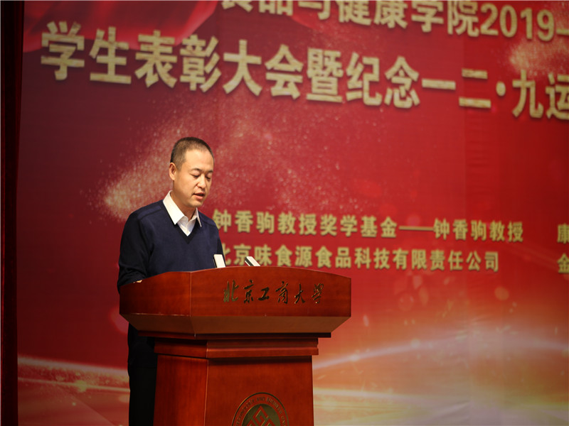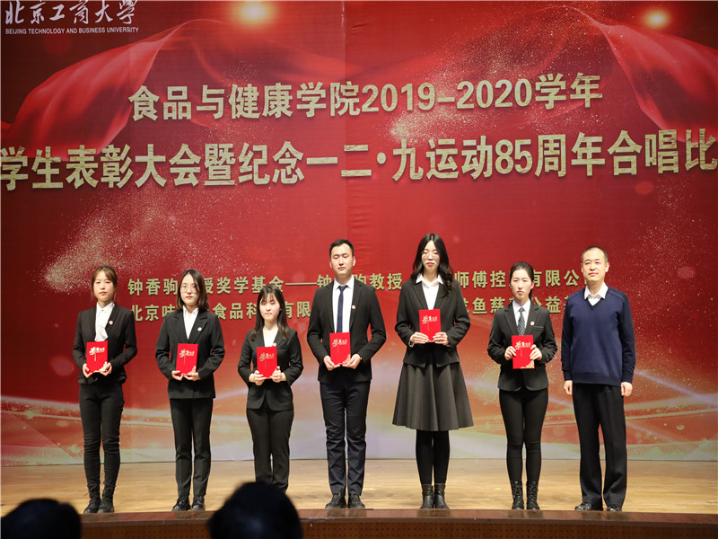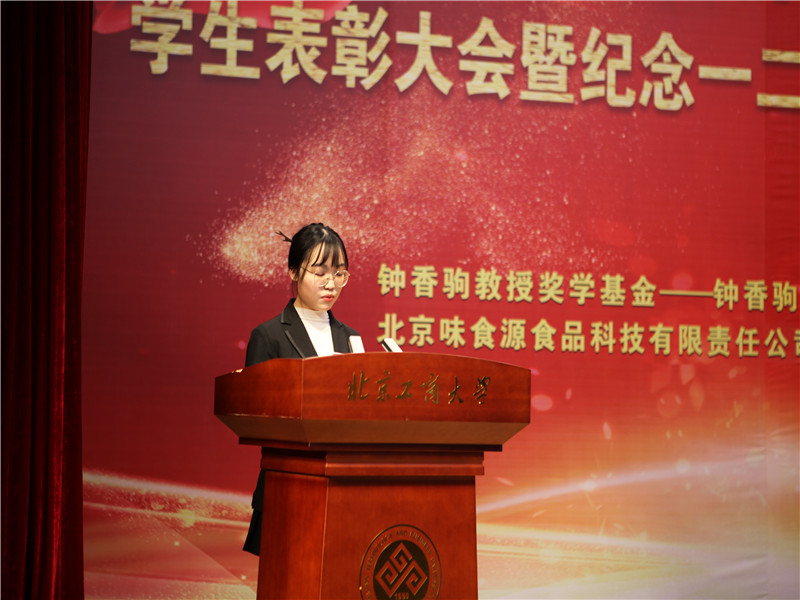 员工处处长吕良宣读了表彰决定。本次表彰大会共表彰先进集体41 个,优秀、先进个人147人次,奖学金298人次。其中,6人获国家奖学金;1人获董事长奖学金;11人获国家励志奖学金;18人次在各类市级及以上学科竞赛中取得优异成绩;33人次获“钟香驹教授奖学基金”、“味食源奖学金”、“康师傅奖学金”等社会奖学金。