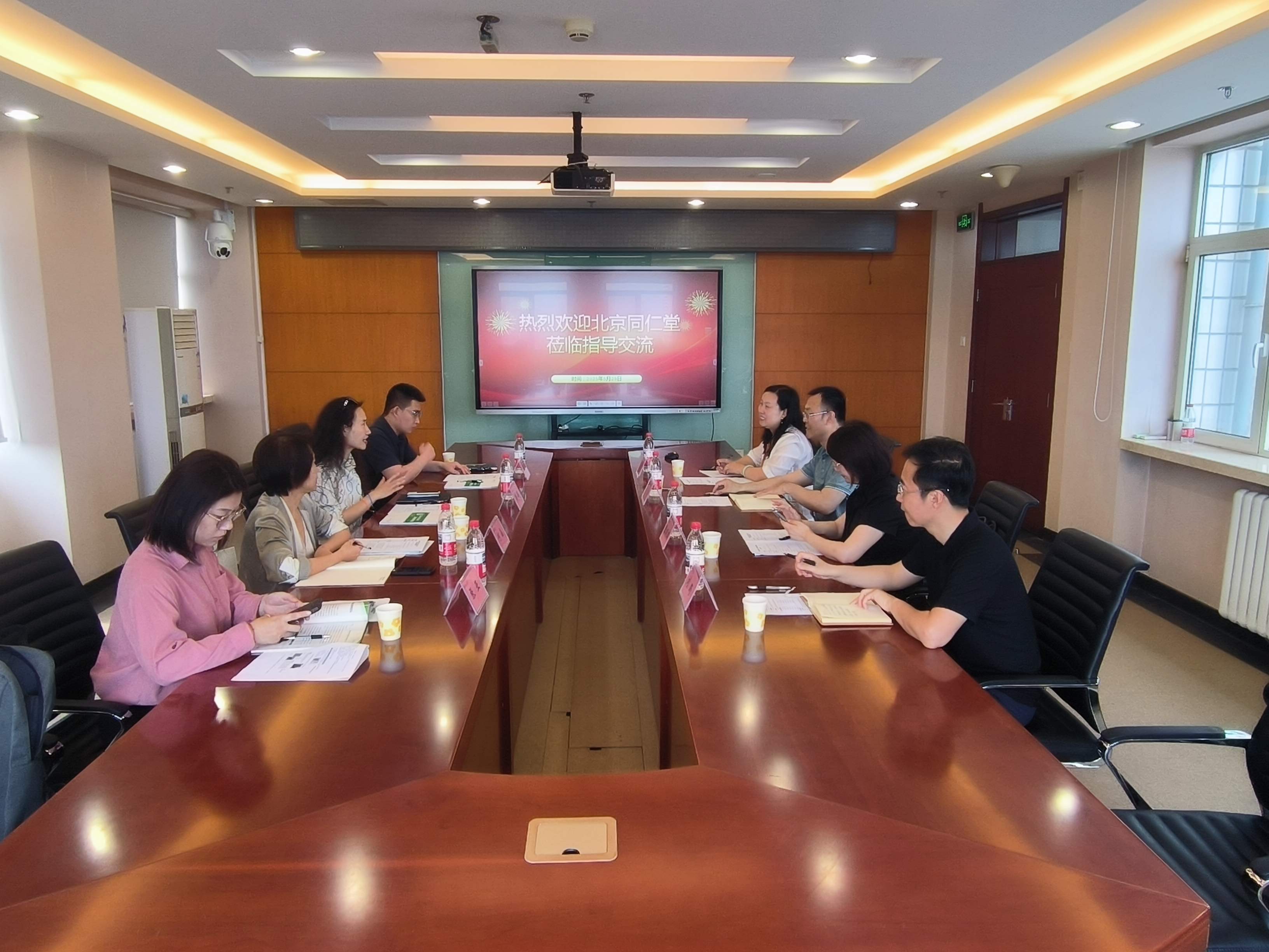 5月29日,北京同仁堂健康药业股份有限公司药食同源研究院经理韩璐一行莅临公司指导交流,北京同仁堂健康药业股份有限公司药食同源研究院产品与品牌总监何晶,高级研发经理张亚,知嘛健康新零售业务经理金志杰一并参加了交流活动。yl6809永利经理王彦波、数字与艺术研究院副经理陈晓环、食品风味与健康交叉创新研究院常务副经理刘野等参加了此次活动,会议由经理助理许朵霞主持。