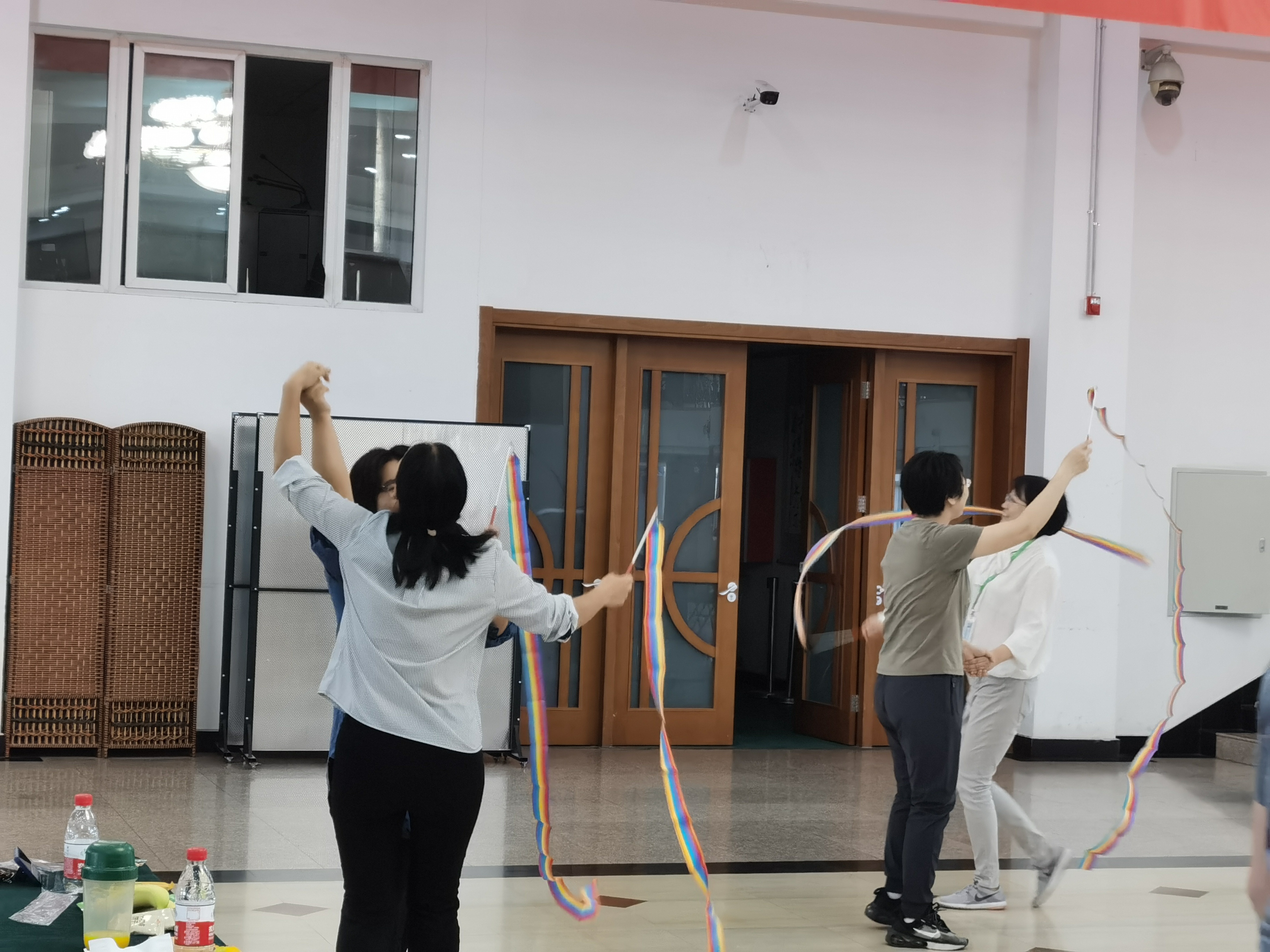 活动邀请资深心理咨询师关雨桐老师现场指导,通过以舞修心的方式,引导老师们释放压力、表达感受,深入体验身心的和谐与平衡。在关老师的带领下,老师们伴随着或舒缓悠扬、或动感欢快的音乐,扬起手中的彩带,自由舞动身体,不追求表演效果和完美技巧,沉浸在各自的情境中,仿佛时而漫步在山间小径,时而在和儿时的伙伴嬉戏玩耍,从指尖到内心都得到了充分的释放,感受到了全心身放松的惬意。