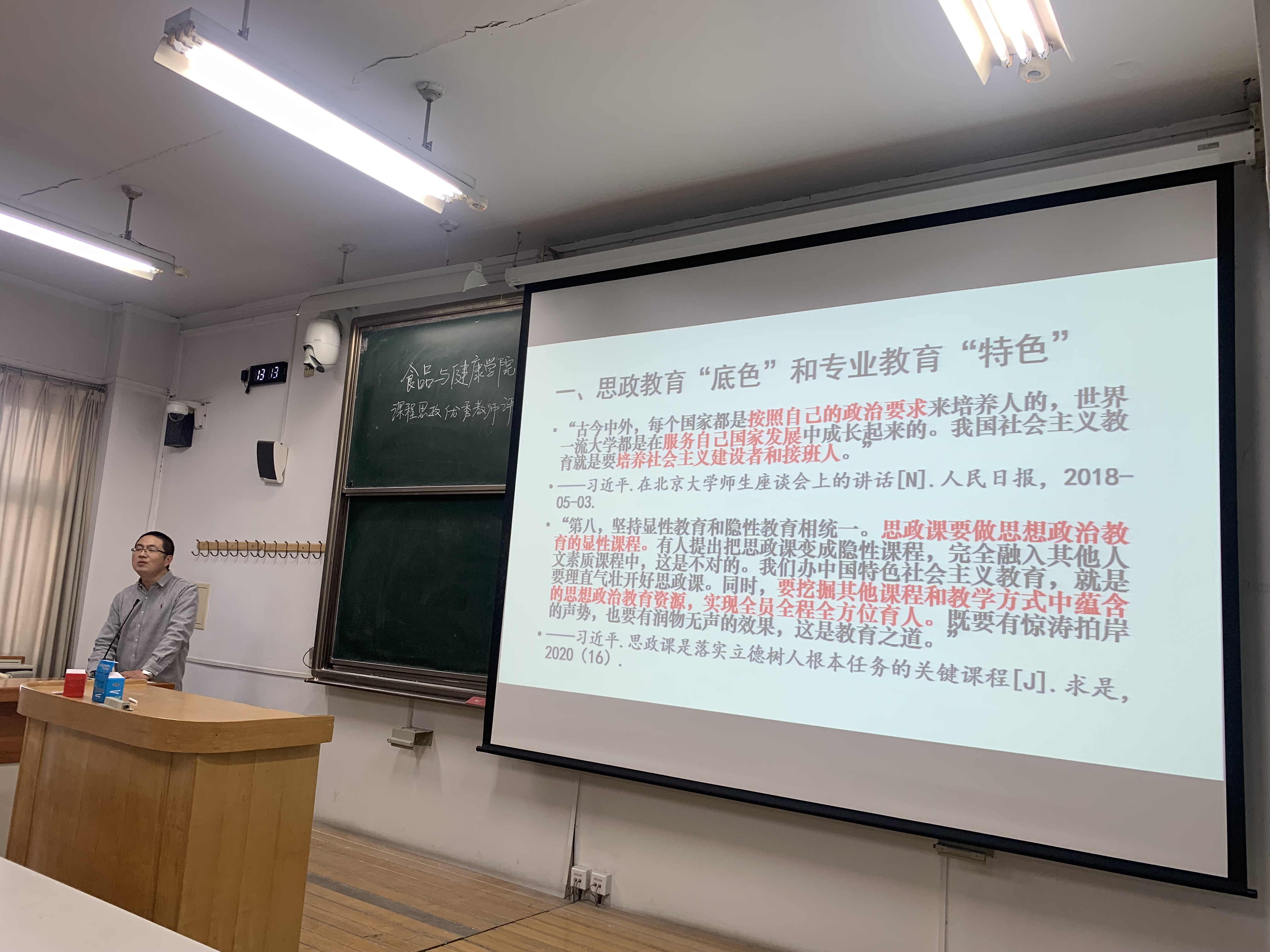 郁永辉老师讲授了《食品营养学》,从重挫英国海军的坏血病出发讲解维生素C的发现,通过对比西方航海对资源的掠夺、对殖民地的剥削与郑和下西洋构建海上贸易通路,促进周边国家经济发展和文化交流的历史,引出要懂得感恩,珍惜现在来之不易的幸福生活的思政元素。张慧娟参赛的课程是《生物化学》三羧酸循环一节的内容,将Crab cycle的产能作用与黄河流域四大水电站为祖国各地提供电力的相似点有机地结合,将能源的重要性突出,加深了同学对该知识点的记忆,课程结尾处用对科学家三羧酸循环的持续探索总结为“路漫漫其修远兮,吾将上下而求索”,鼓励员工对知识进行不断地探索,巧妙地在专业课中融入了思政的底色。李游老师的《食品化学(双语)》碳水化合物采用了全英文教学,用近期中国科学家成功利用一氧化碳合成蛋白质、二氧化碳合成淀粉两个重要科研成果展现国人在食品科学领域的自信。