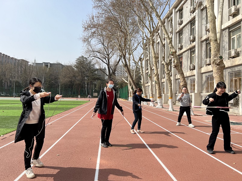 3月8日中午,在东区操场老师们开展了轻松愉快地体育运动。 有的携手健步走,畅聊科研与人生; 有的一起跳绳,跳出活跃身姿; 有的一起打篮球,彰显了巾帼不让须眉的态势; 有的一起打羽毛球,全身心的运动和放松。 还有的参加呼啦圈、乒乓球等运动项目,大家都尽情的享受着运动带来的快乐。 三日的暖阳下,老师们在一片欢声笑语中度过了这次难忘的三八国际妇女节。