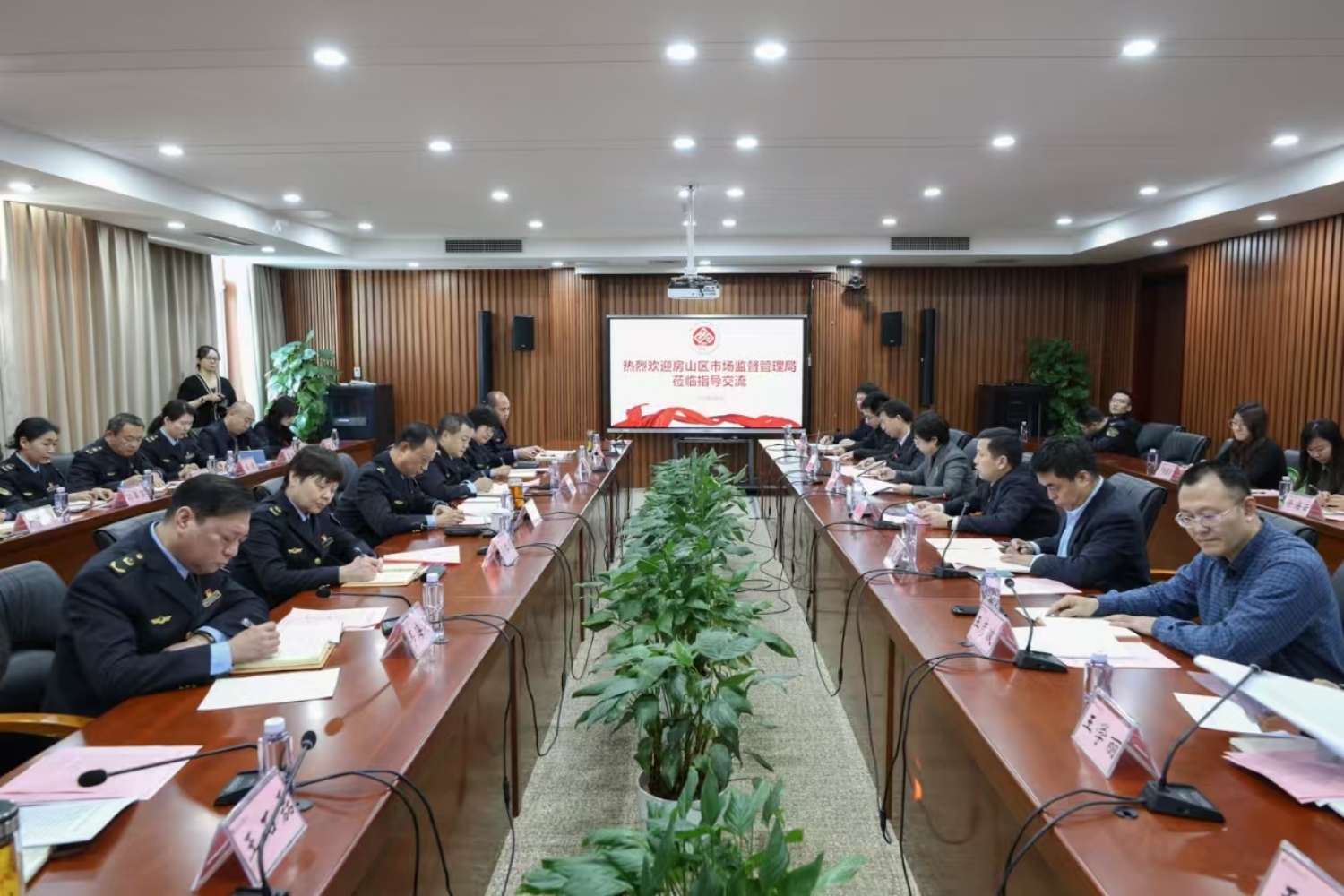 签约仪式后,双方代表就相关工作情况展开交流。张景山介绍了房山区私营个体经济协会发展情况及房山区香妆行业协会筹备建设情况;韦海涛介绍了房山区食品、化妆品产业发展现状、监管重点工作情况。张晓磊、王学丽、王蓓、徐嘉良等分别就院校对外合作、人才培养、科研创新及社会服务等方面表达了对联动合作的信心与期待,进一步增进校地双方的相互了解。