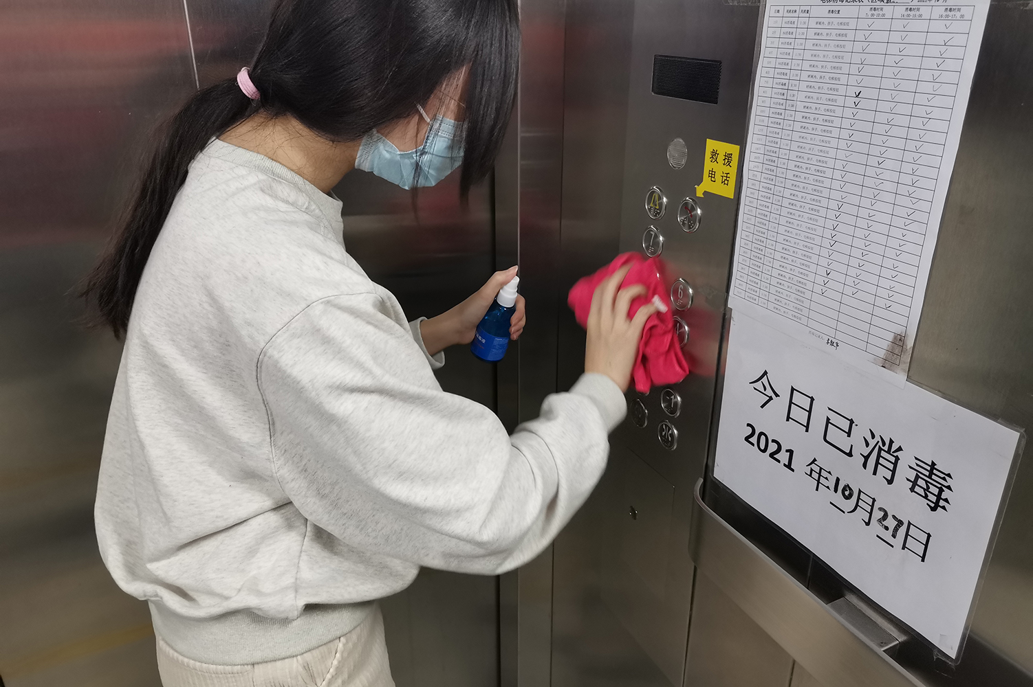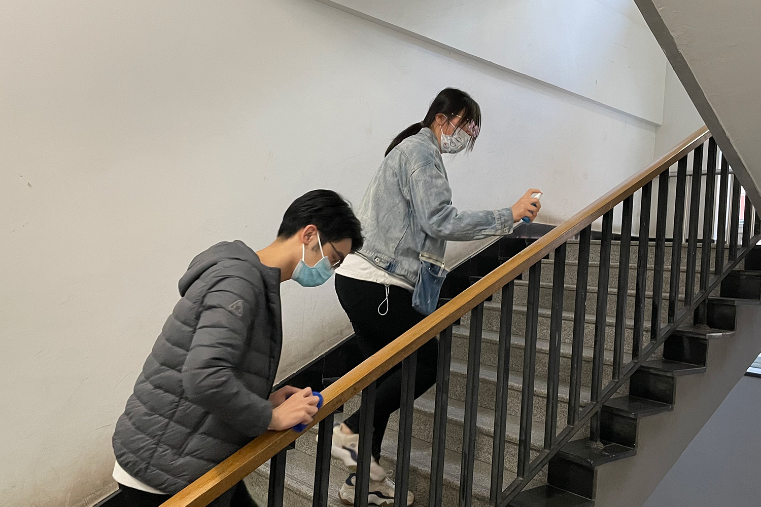 在公司清洁工作的基础下,支部同志们再次认真打扫了教三楼教室、楼梯间、电梯间等多个场所,并进行了消毒处理,以加强公司为师生们的筑起“安全墙”。