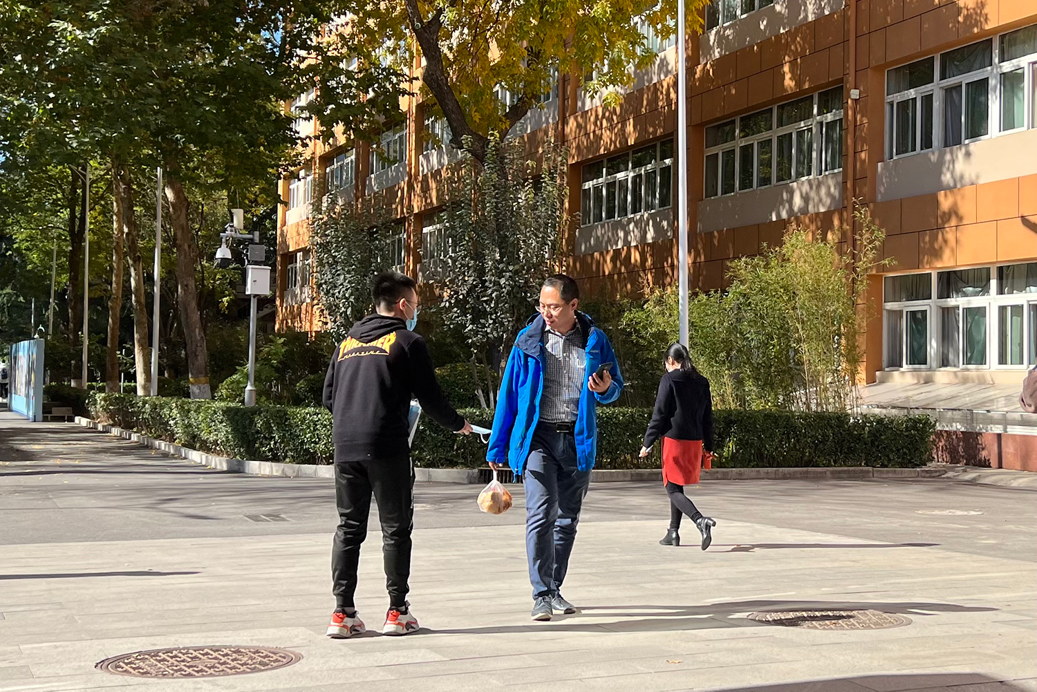 此外,支部同志还在校园内发放口罩,督促提醒校园内师生员工坚持佩戴口罩。