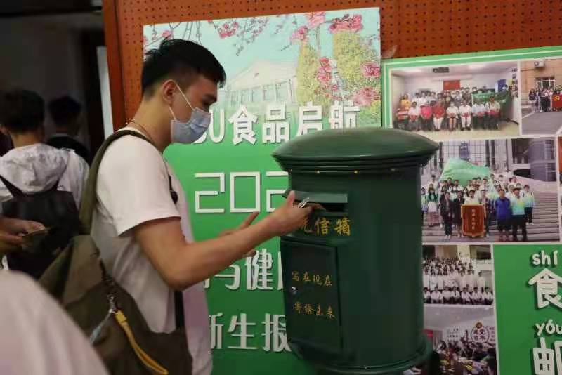 喜迎新生,公司特设立“‘食’光邮局”。新生可在特制的信封中写下大学四年的规划与目标,封好后投递至“食”光信箱中,期待大学四年后重新开启,回忆入学时的青春岁月;同时引导新生转换角色、明确目标,激励他们成长为更好的自己。