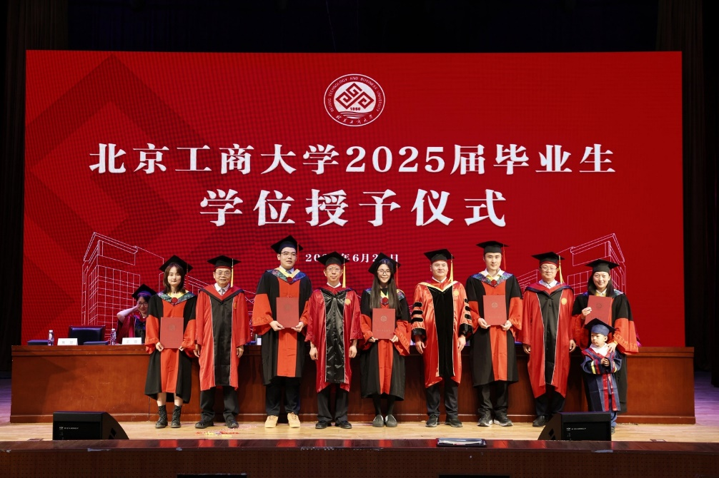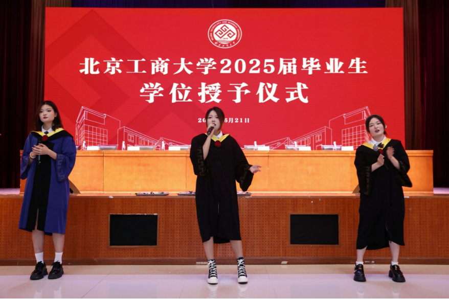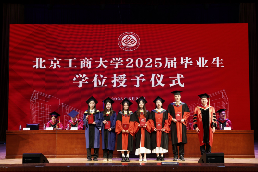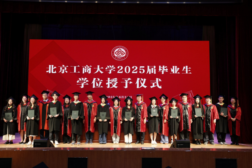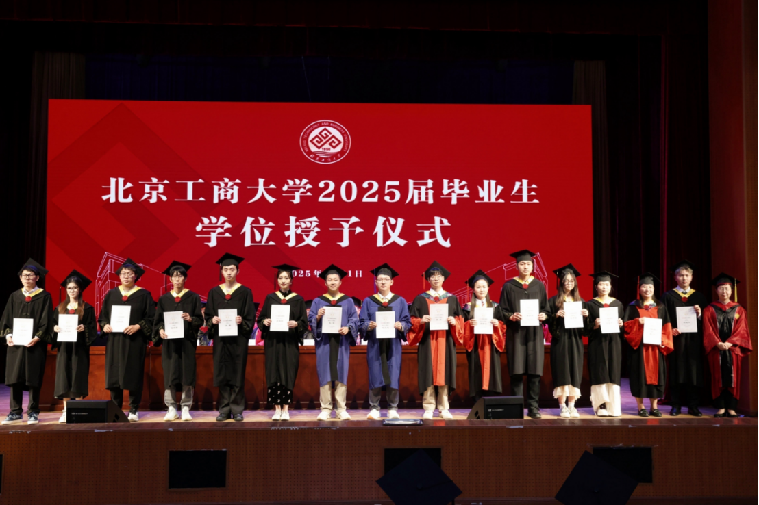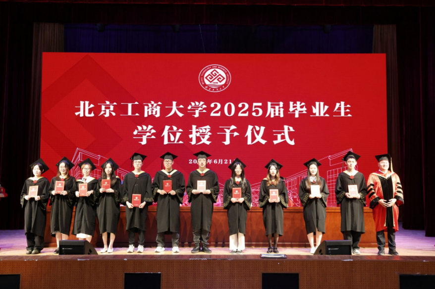 学位授予仪式中,孙宝国、邓祥征、贾英民、罗云波等几位教授率先为博士毕业生授学位,随后,公司教授代表为硕士和本科毕业生授学位。毕业生们步履坚定地上台,双手接过证书,拨穗正冠,自信和期待在他们的脸上绽放夺目的光彩。