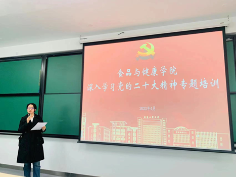 会议开始由公司书记胡燕霞致欢迎词,胡书记指出深入学习贯彻习近平新时代中国特色社会主义思想和习近平总书记重要讲话精神,推动全院教师充分认识学习宣传贯彻党的二十大精神具有重要意义。在新时代新征程中奋力将新理念、新科技、新案例纳入课程教学之中,促进教学工作高质量发展新局面,切实走好第一方阵、当好“三个表率”、建设模范院系,为全面建设社会主义现代化国家、全面推进中华民族伟大复兴贡献食品力量。