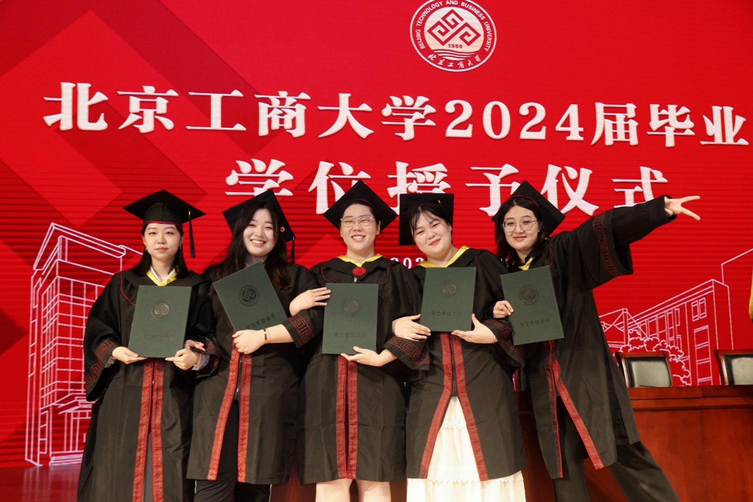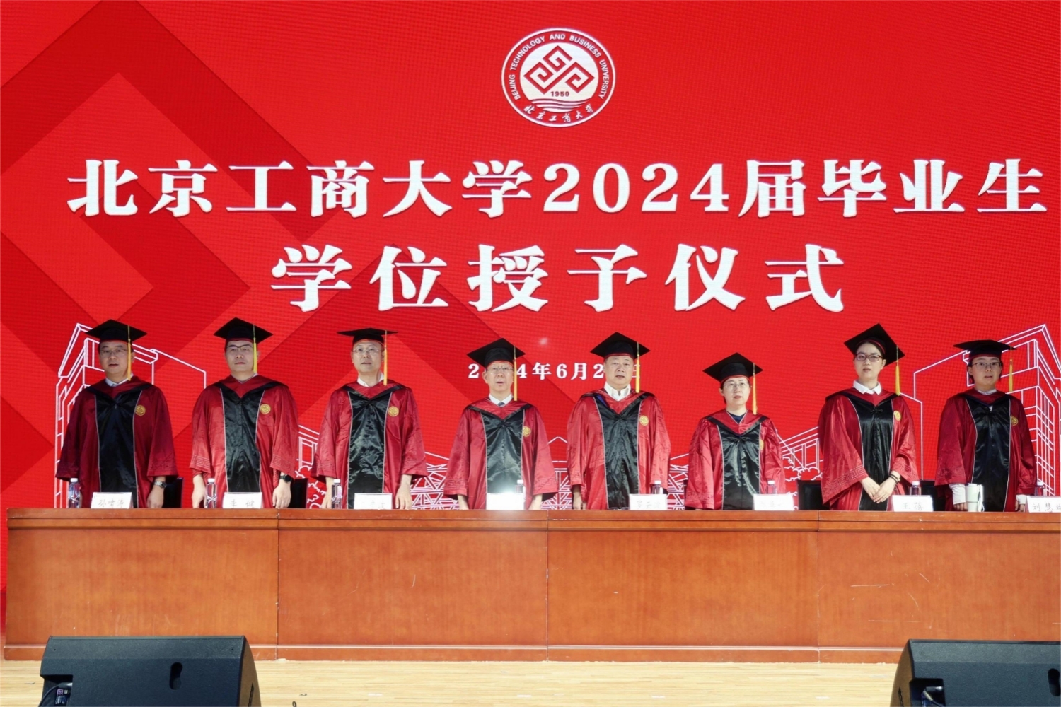 学位授予环节,孙宝国院士首先为博士毕业生授学位,随后,公司教授代表为硕士毕业生和本科毕业生授学位。在学位授予的过程中,每一名毕业生逐一上台,接受老师颁发的学位证书,拨穗正冠。每个人的脸上都洋溢着青春的笑容和对未来的期待。