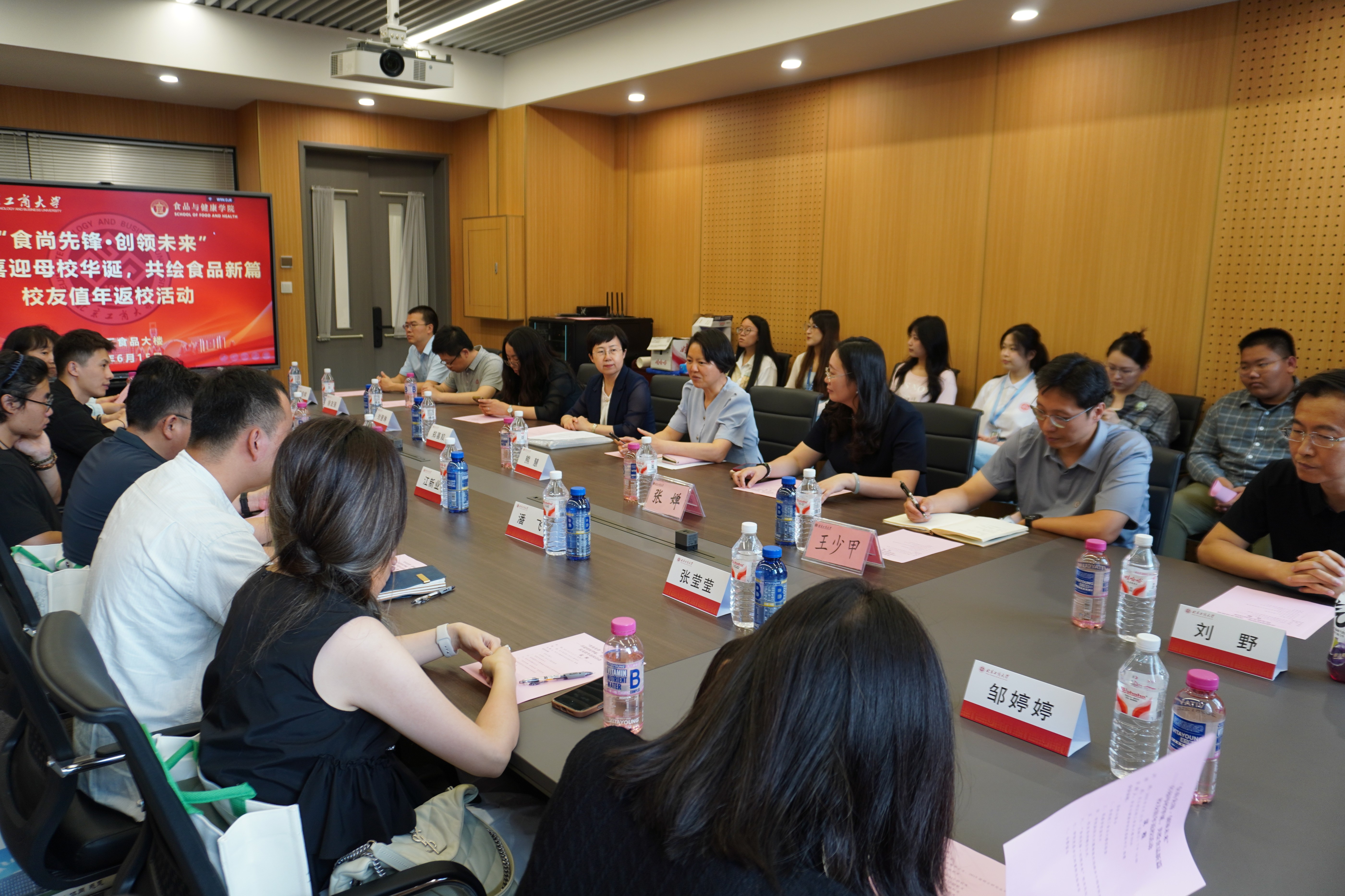 在“食尚先锋·创领未来”主题论坛环节,公司经理助理张婵、王少甲,系主任徐友强、杨绍祥,食品风味与健康交叉创新研究院常务副经理暨食品113班班主任刘野、食品111班班主任邹婷婷分别与员工们进行了轻松而深入的交流。教师们表达了对员工们事业有成的欣慰与祝福,员工们则深情回忆求学岁月,感恩师长的悉心培育,并分享了各自在食品及相关领域的奋斗历程与成就,展现了北工商食品人的风采。活动现场,员工们还品尝了公司自制的特色冰激凌,在炎炎夏日感受了独特的“食院味道”和“回家”的甜蜜。