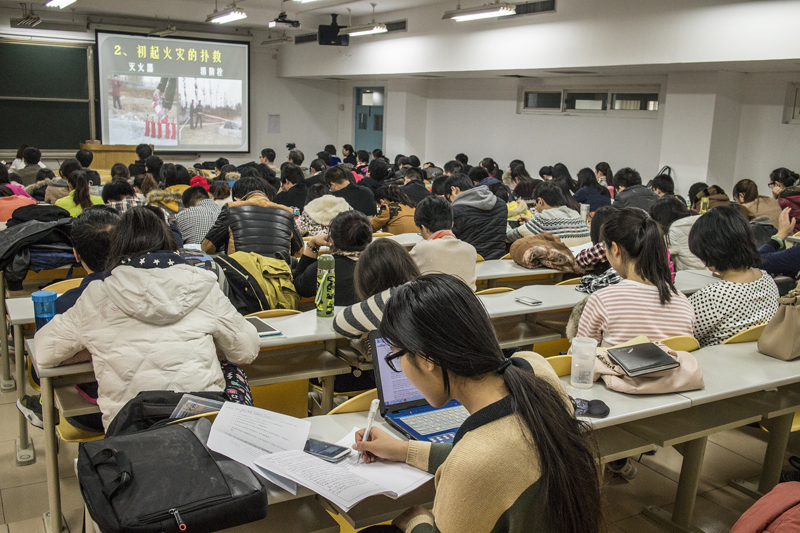 本次消防安全培训讲座是由保卫处杨东杰副处长主讲,杨处长以其多年的消防培训经验,采用生动而富有激情的语言,启发式的教学方法,以发生在社会、高校的大量火灾案例为素材,以文字及图片形式生动地阐述了普及消防安全知识、提升消防意识的重要性。同时,杨处长分别介绍了消防安全应当注重的四个能力,即:检查消除火灾隐患的能力、组织扑救初起火灾的能力、组织人员疏散逃生的能力、消防宣传教育培训的能力。从“防火”、“灭火”、“逃生”、“自救”四个方面详细介绍了火灾的形成过程、自救逃生的方法以及灭火器的种类和操作方法等一系列消防安全知识。同时,向老师们讲授了“消防意识”、“消防知识”和“消防工具”三要素,即人防为主、技防和物防相结合的防火理念。