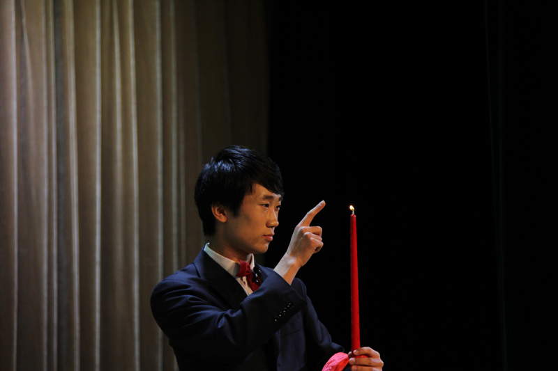 汇演近半,但节目的精彩令现场的观众们毫无倦意,愈加兴奋。从未彩排过的魔术表演终于揭开了神秘的面纱:环境121班的“魔术大师”——李昊不负众望,扑克牌在其精湛的手法下千变万化,引得台下观众连连叫绝;随即而来的互动魔术环节更是为他的表演锦上添花。凭借扎实的唱功和完美的配合,环境112班张立忱、杜思婵等人的歌曲串烧把整场汇演的气氛推向了最高潮。紧接着,马晓欢、李玥萱两位同学带来的朗诵——《环保之歌》让在座的每位观众切身地感受到环境人为生态环境可持续发展所作出的卓越贡献。如此重要的演出,自然不会缺少“弹唱大咖”袁传胜同学的加盟,一首《坐在巷口的那对男女》极为传神地唱出了恋爱中校园男女们各式各样的姿态,满是俏皮。