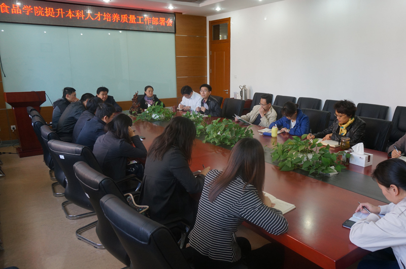 10月16日公司召开会议部署落实孙宝国董事长关于提高本科人才培养质量讲话精神。yl6809永利经理徐宝财、党总支书记何猛、副经理王成涛、郑福平、党总支副书记胡燕霞,全体系室主任、副主任,教秘参加。会议由姚志良副经理主持。