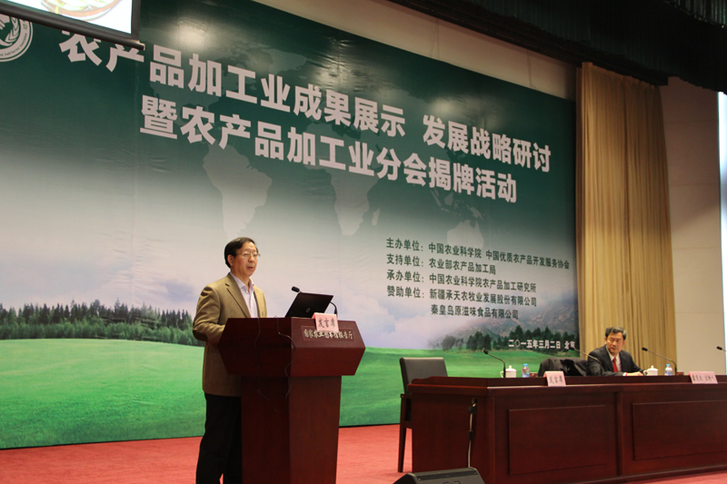3月2日,由中国农业科公司、中国优农协会和农业部农产品加工局主办的“农产品加工业成果展示、发展战略研讨暨农产品加工业分会揭牌活动”在中国农科院举行。公司董事长孙宝国院士应邀出席并作主旨报告。来自全国各地的中国优农协会农产品加工分会会员、研发体系各分中心代表、各省农科院加工所所长以及农产品加工龙头企业代表等近300名参加了会议。