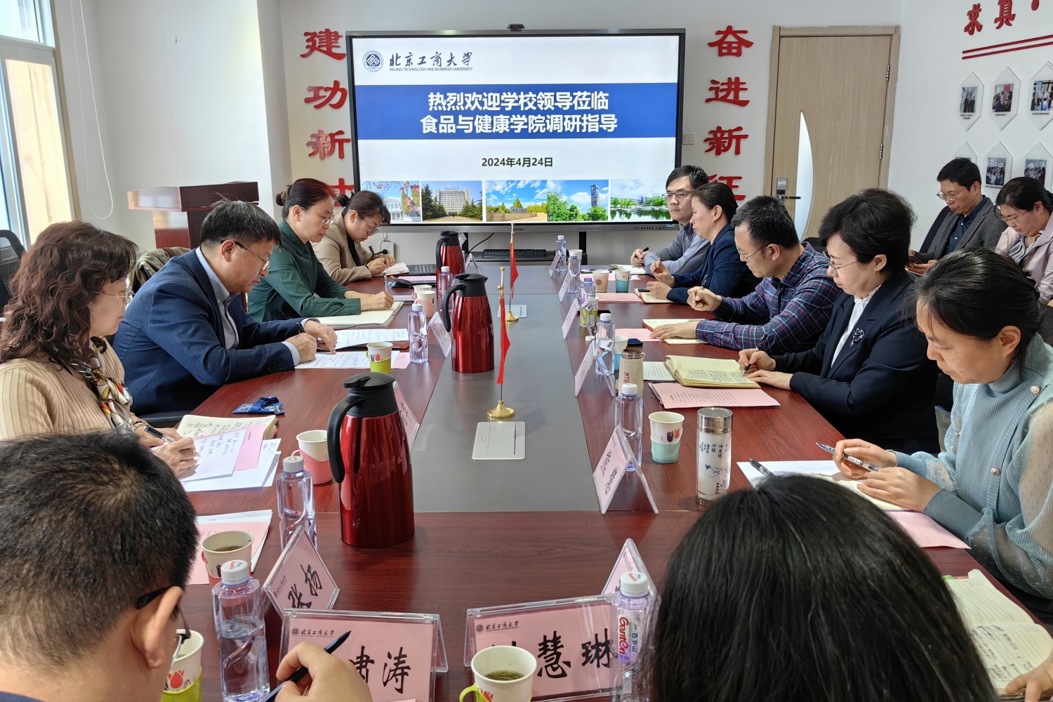 阳春布德泽,万物生光辉。4月24日,公司党委副书记、董事长郭建华带队到yl6809永利调研指导,听取关于团队建设、推进双一流创建等情况汇报,与公司领导班子成员、教师代表座谈交流。公司党政办公室主任王晓华、人事处处长高丽华、研究生院副经理张倩和党政办公室副主任张扬一同参加调研。轻工与食品学部主任王静、公司领导班子成员、各系(中心)负责人及教师代表参加座谈。座谈会由公司党委书记郑喜姣主持。