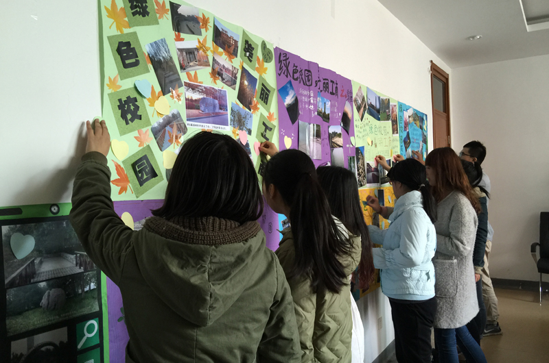 4月13日,yl6809永利举办“绿色校园,美丽工商”摄影展。院心理部将大一各班参评的9张海报张贴在评比墙上,经近百名同学通过粘贴爱心的投票方式评比出了最受大家欢迎的绿色校园摄影作品海报,一、二、三等奖分别由食品143班、环境142班、食品142班获得。在投票过程中,来自生物132的姚冬梅表示:“参与这次活动的班级都很用心,作品紧贴主题,而且都很有新意,活动让同学们记录下自己美丽的校园,同时让我们了解到珍惜公司绿色的环境就是善待自己。”