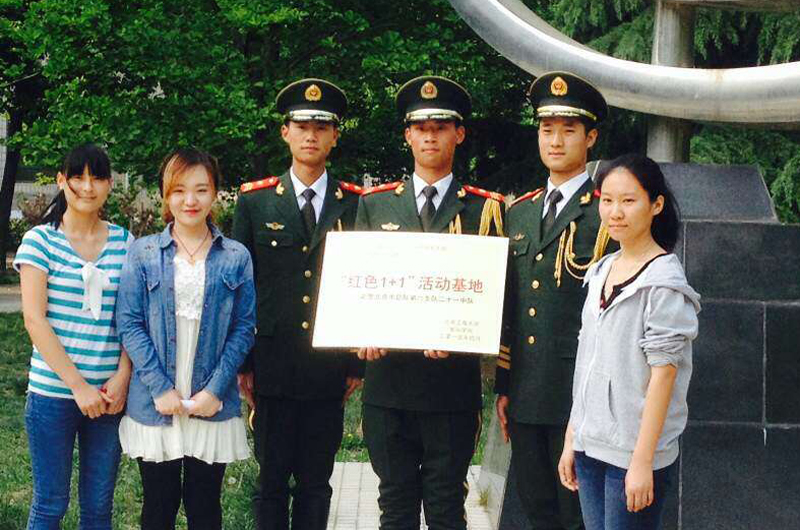 仪式后,员工党员带领武警战士参观了校园。